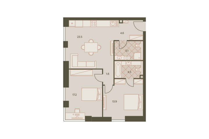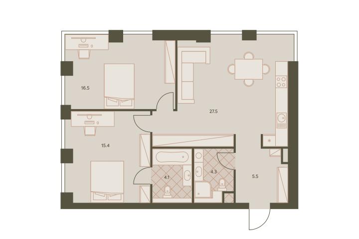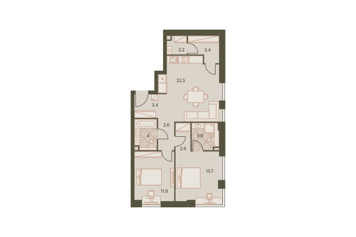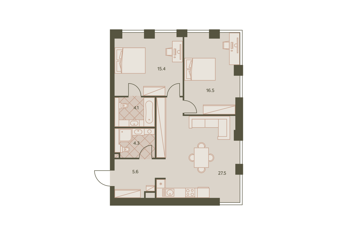Трехкомнатные квартиры в ЖК Eniteo (Энитео)