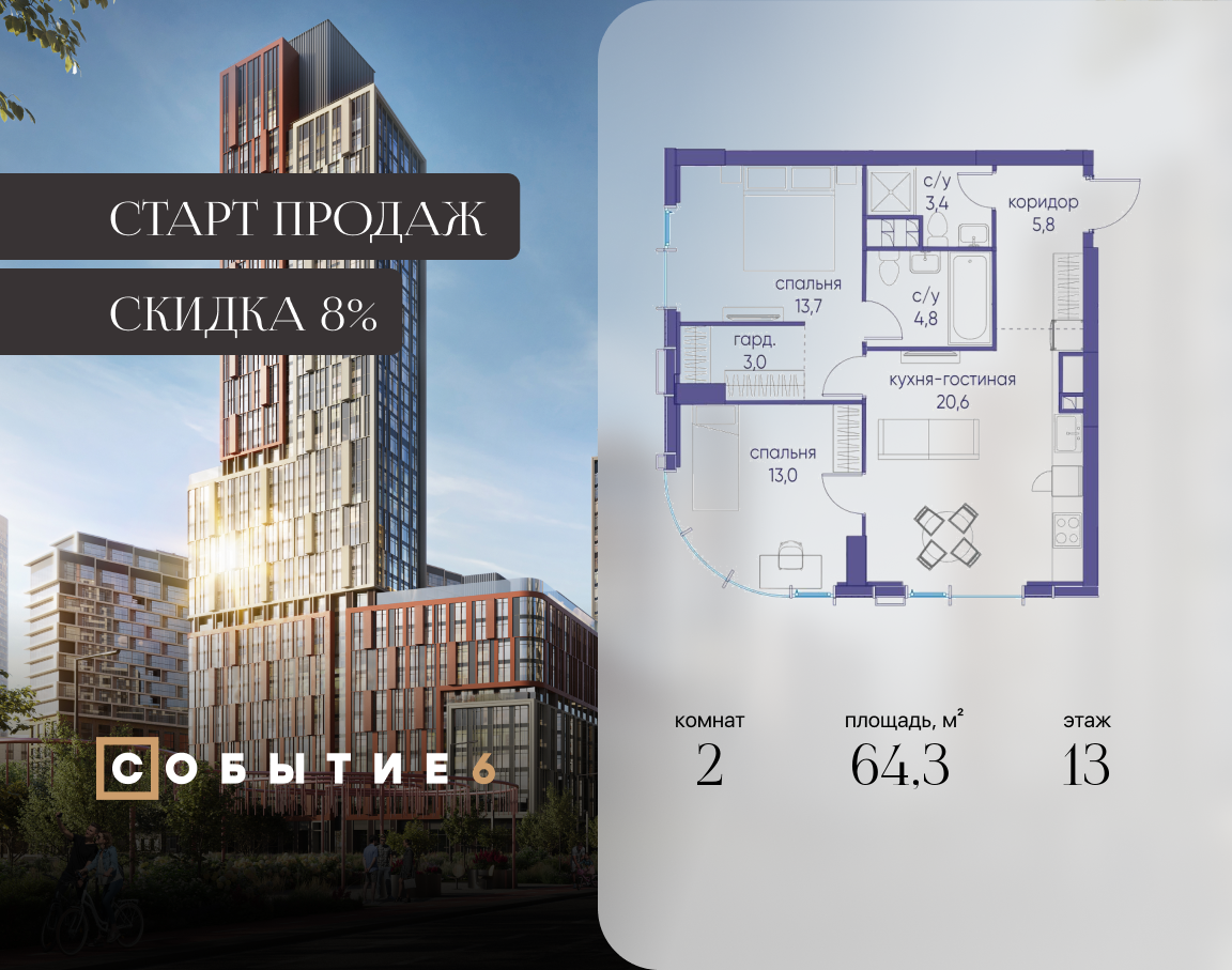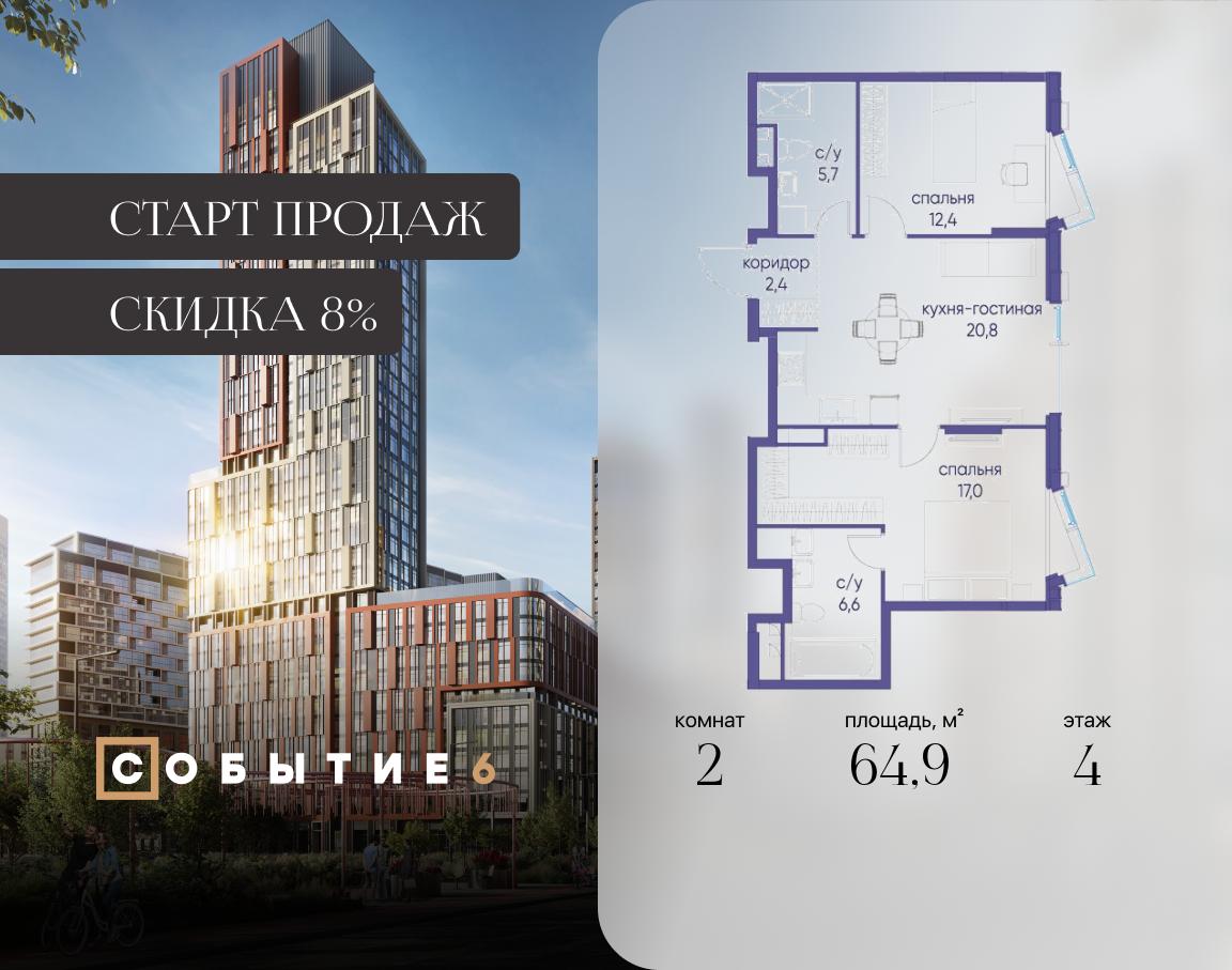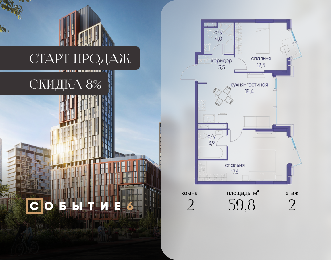Двухкомнатные квартиры в ЖК Событие