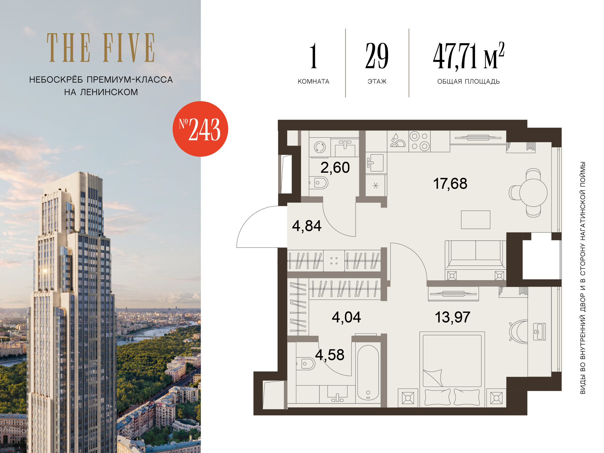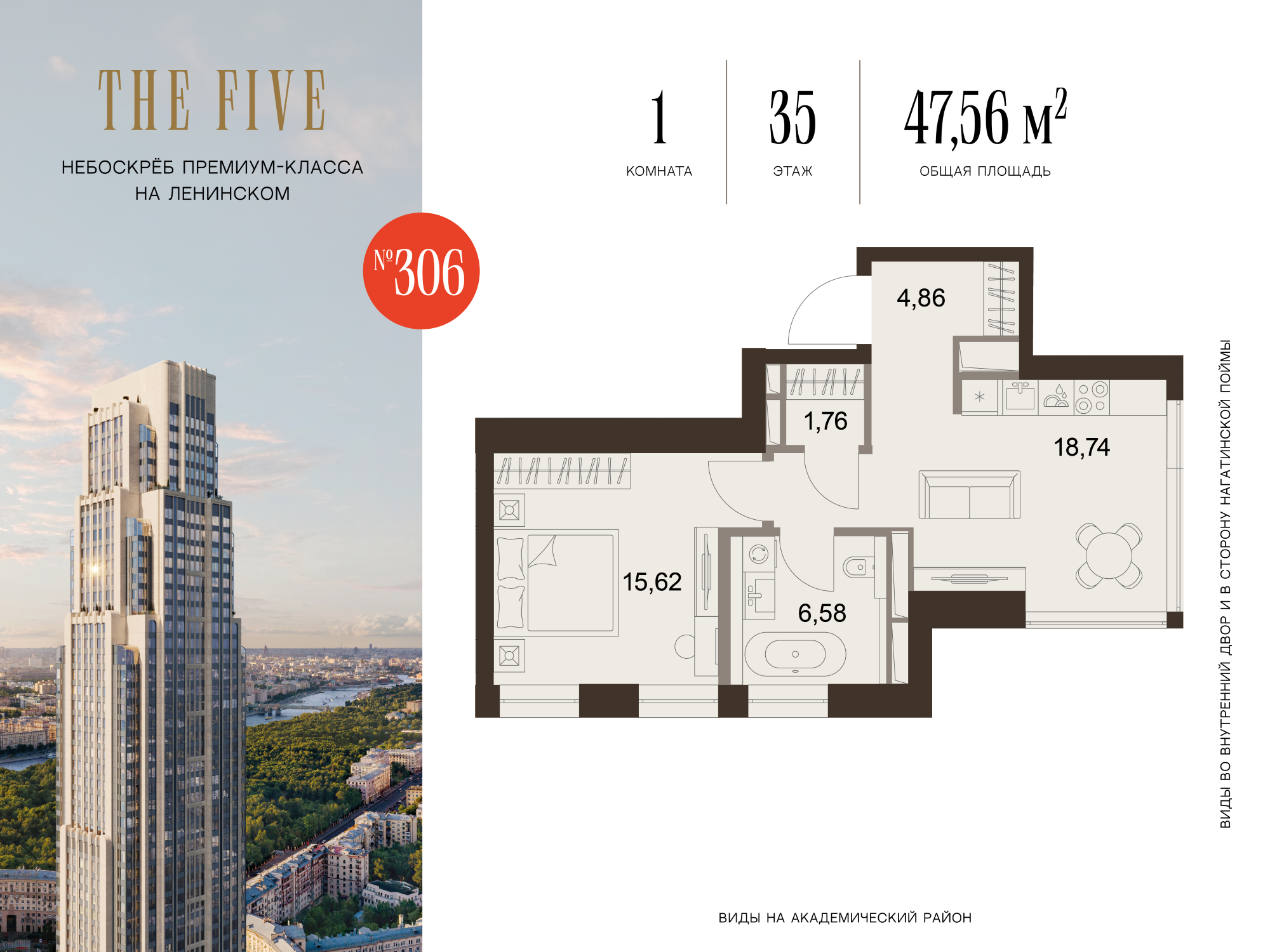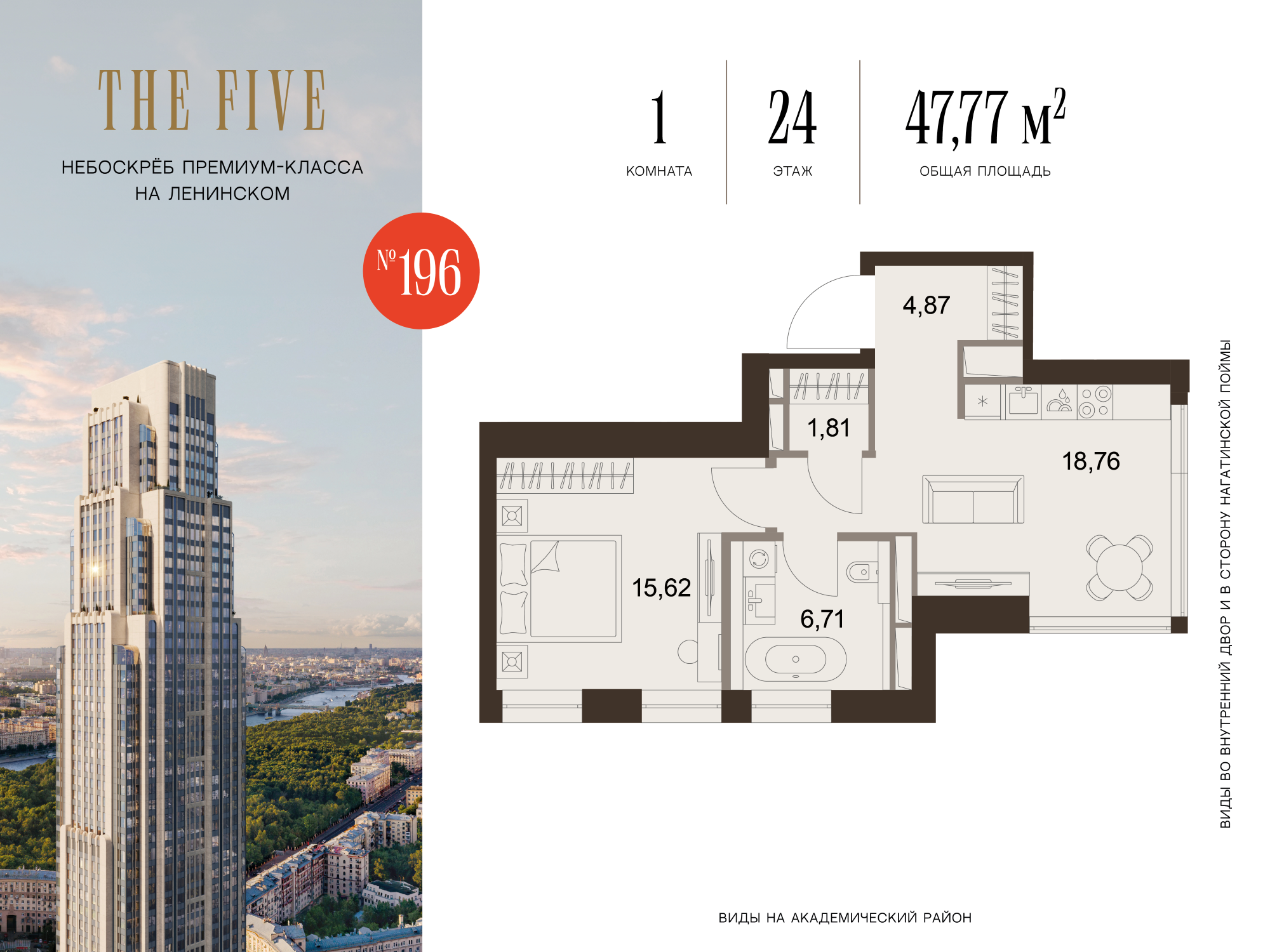 FIVE TOWERS — первый жилой небоскрёб на Ленинском проспекте и самое высокое здание столицы за пределами делового кластера «Москва-Сити». FIVE TOWERS станет одной из главных высотных доминант столицы. 75-этажный жилой комплекс премиум-класса изменит не только облик Донского района, но и всей центральной части города. FIVE TOWERS поражает воображение уникальными видами, монументальной роскошью и совершенством форм. Величественная панорама, открывающаяся из окон вашей квартиры, завораживает: легендарные сталинские высотки, шпиль главного корпуса МГУ им. М. В. Ломоносова, башни Российской академии наук, «Москва-Сити», спорткомплекс «Лужники», новый кампус «Яндекса». В шаговой доступности — 500 га парков, образуемых Музеоном, Парком Горького и парком «Воробьевы горы».