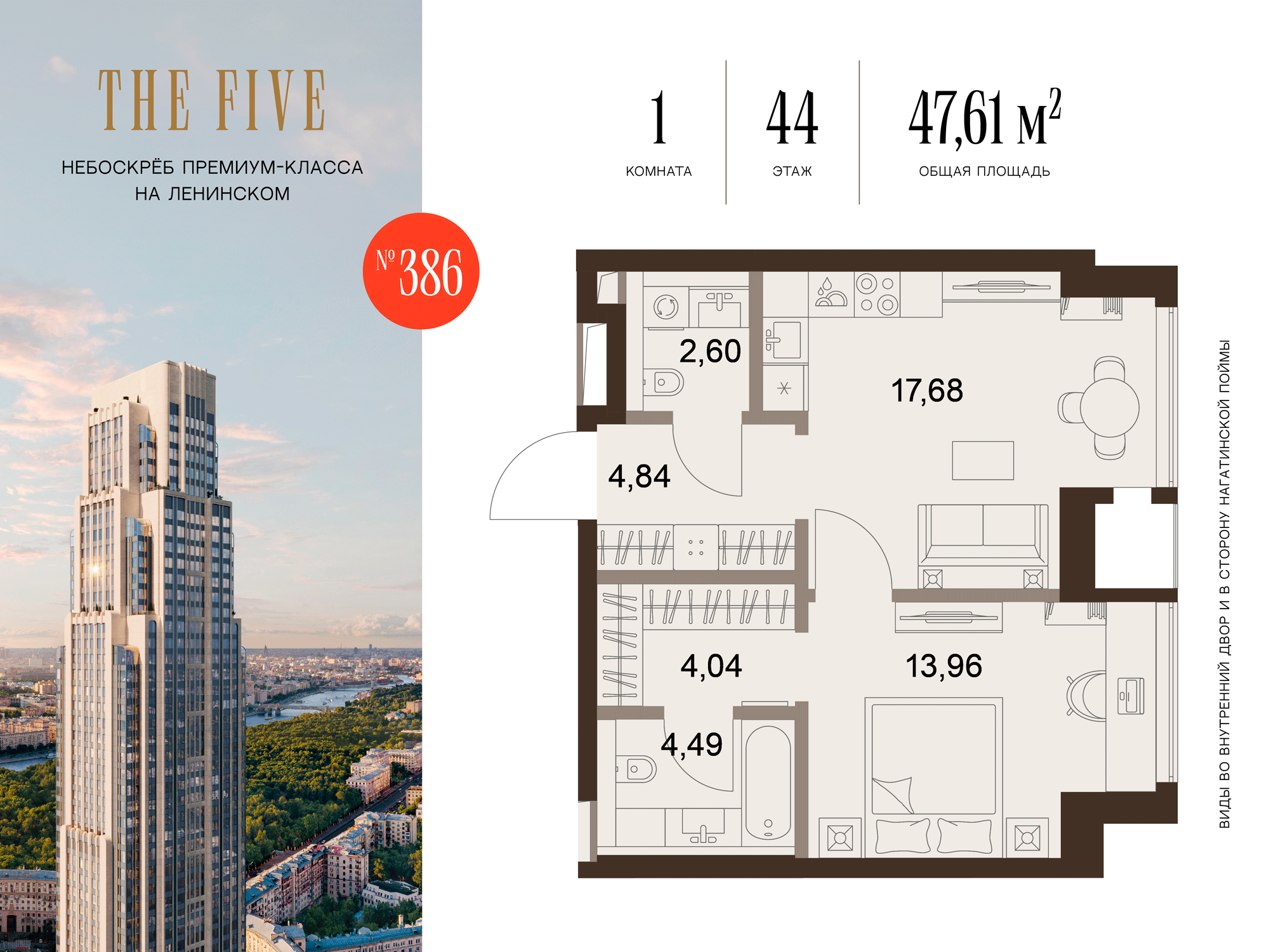 Из роскошных резиденций комплекса открываются фантастические виды на исторический центр Москвы, зелёные парки и знаковые достопримечательности столицы. Эксклюзивные квартиры с террасами запланированы на 3, 49, 63 и 71 этажах небоскрёба. В FIVE TOWERS представлено такое редкое планировочное решение как гостиная с панорамными стенами и потолком.