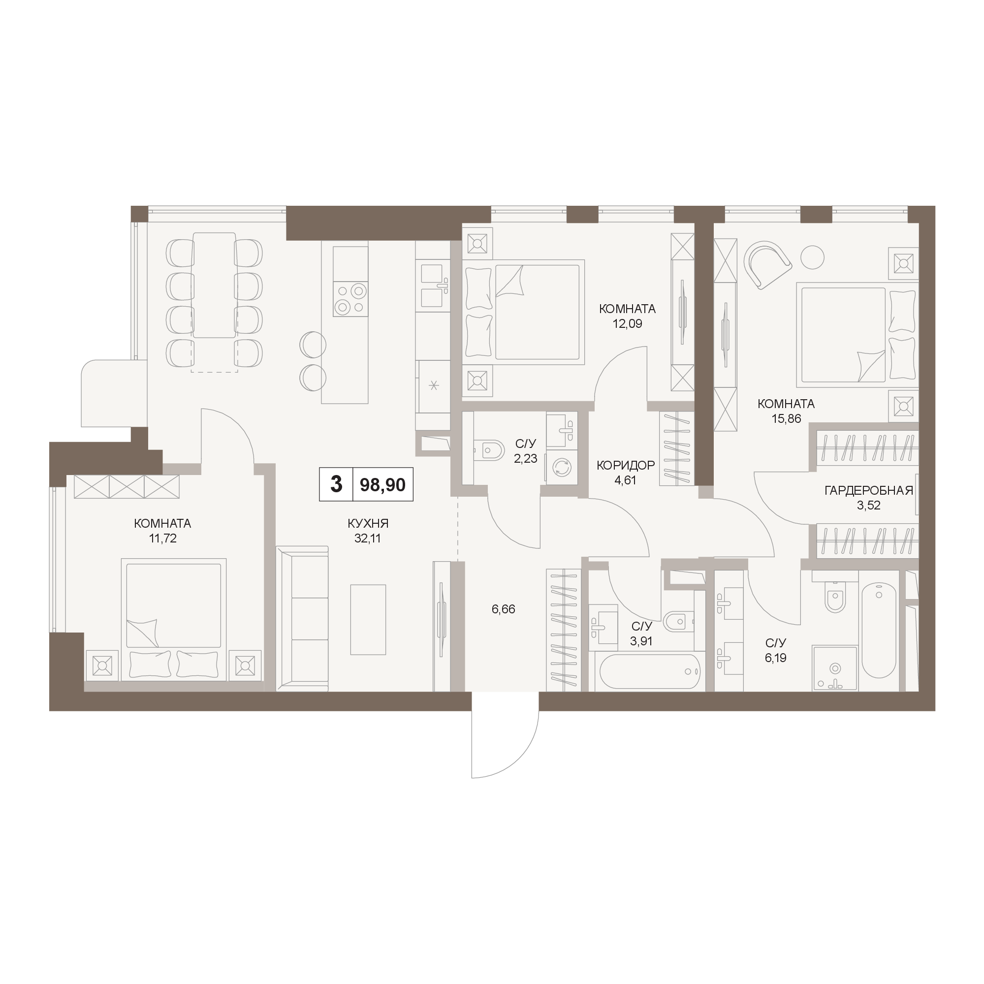 Трехкомнатные квартиры в Five Towers (Файв Тауэрз)