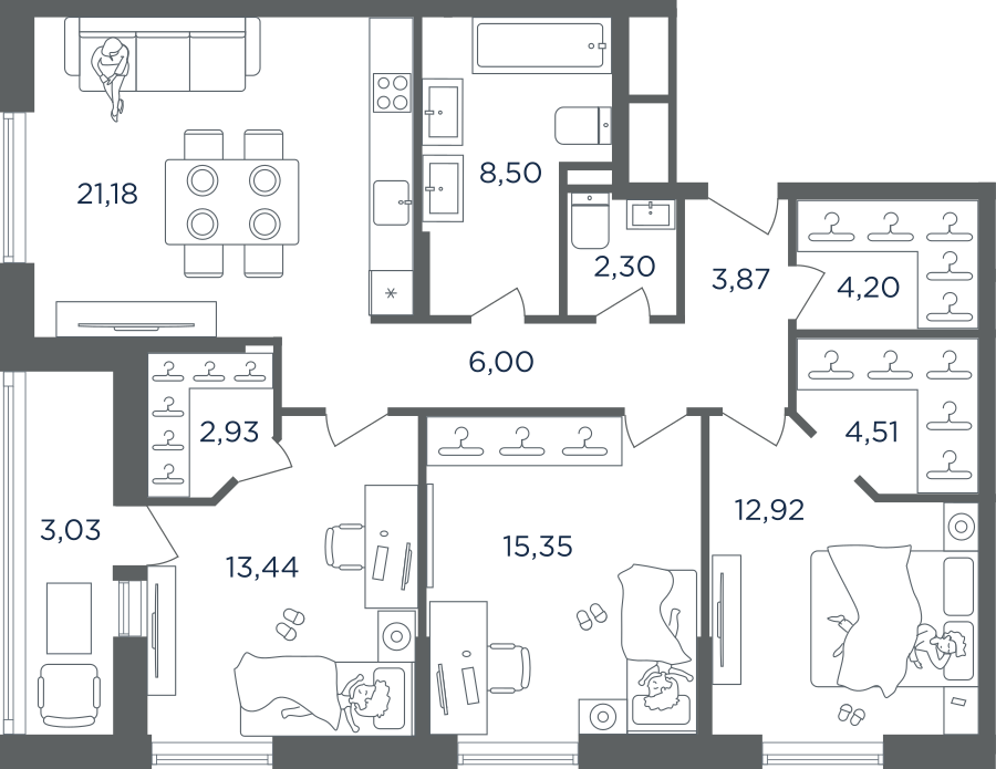 Трехкомнатные квартиры в ЖК Headliner (Хэдлайнер)