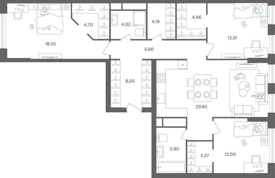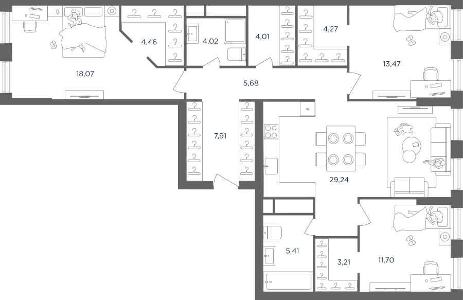 Четырехкомнатные квартиры в ЖК Headliner (Хэдлайнер)