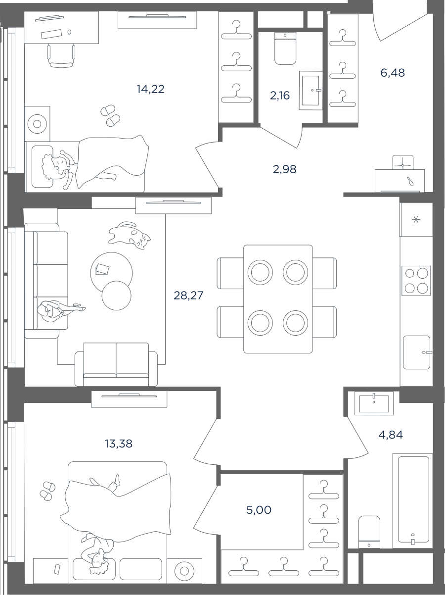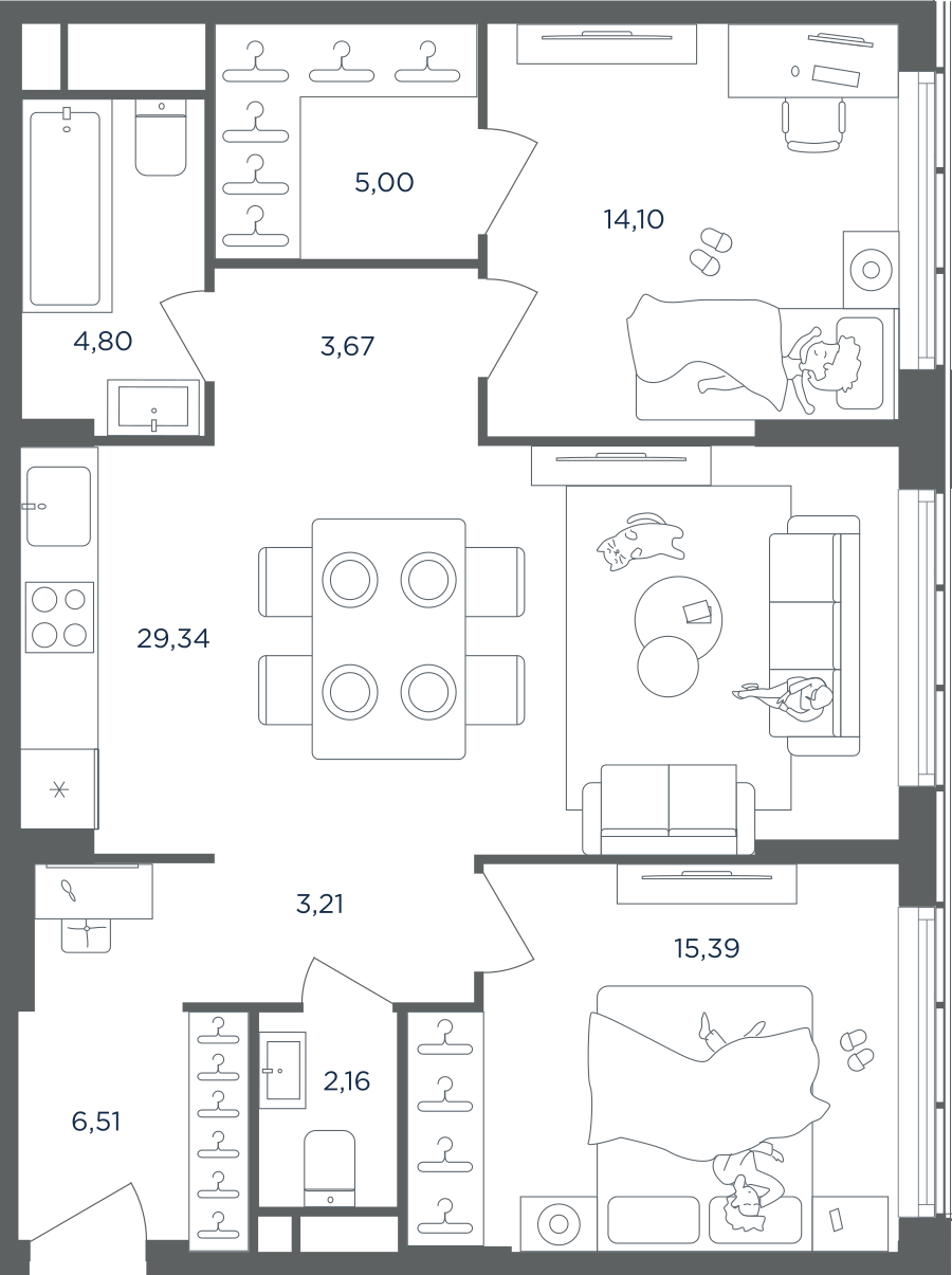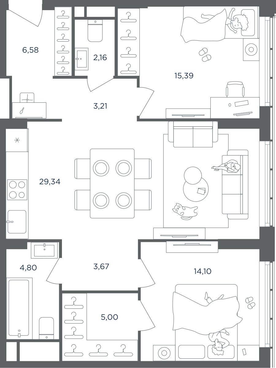 Евро трехкомнатные квартиры в ЖК Headliner (Хэдлайнер)
