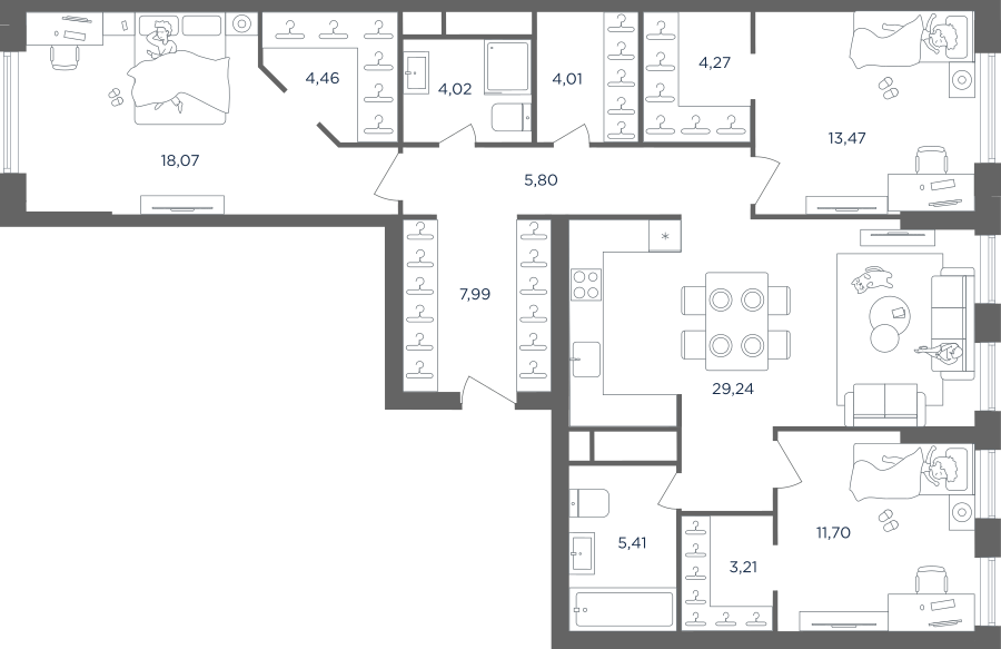 Евро четырехкомнатные квартиры в ЖК Headliner (Хэдлайнер)