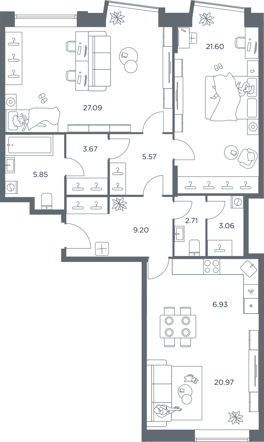 Трехкомнатные квартиры в ЖК iLove (АйЛав)