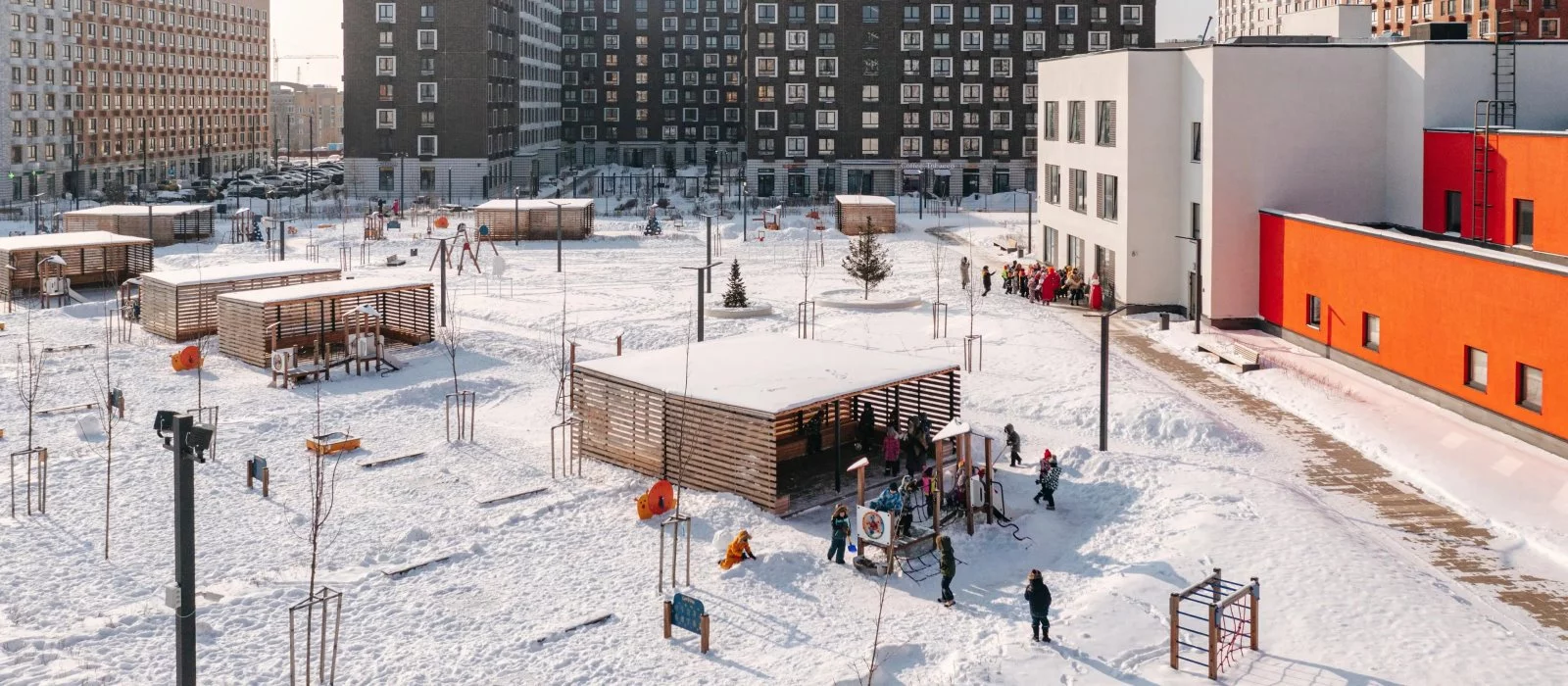 В «Ильинских лугах» строятся только девятиэтажные дома — такая архитектура соответствует спокойной жизни за городом. В каждом дворе-парке есть места для отдыха, детские и спортивные площадки. А ещё, здесь уже открыт большой PlayHub «Гравити» — современное игровое пространство с космической тематикой, холмами, зонами для игр и отдыха жителей любого возраста.
