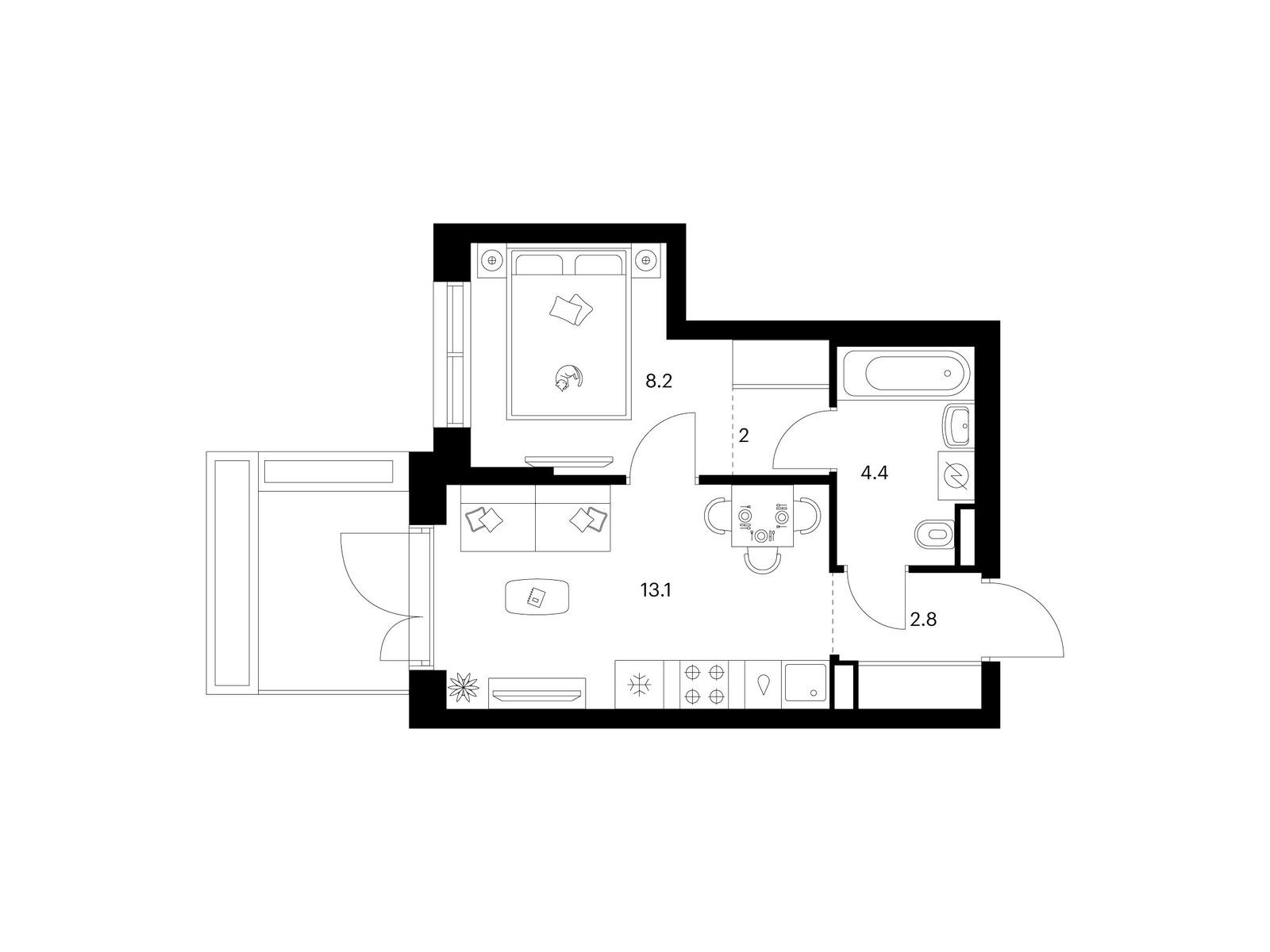 В квартирах продуман каждый метр — мы детально просчитываем все возможные сценарии и способы использовать пространство. Например, большой семье подойдёт квартира с кухней-гостиной, выделенной постирочной и спальнями, разнесёнными по разные стороны гостиной. А кому-то важнее просторная мастер-спальня с гардеробной и собственным санузлом.