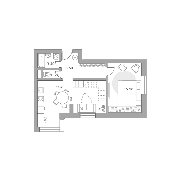 Внешние стены домов выложены пенобетонными блоками, утеплены и облицованы кирпичом белых и коричневых оттенков. Строгую геометрию фасадов украшают панорамные окна и витражное остекление балконов. Покупателям предлагаются студии 23-26 кв. м, однокомнатные 33-44 кв. м, двухкомнатные 48-63 кв. м и трехкомнатные квартиры 66-77 кв. м.