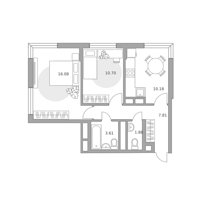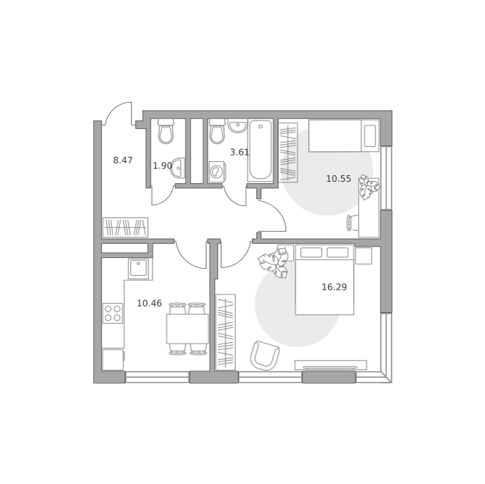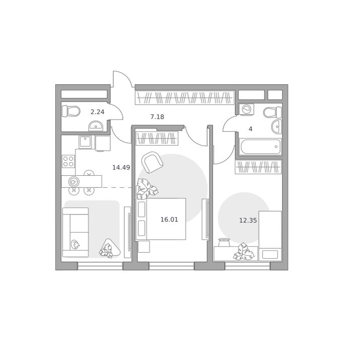 Квартиры сдаются без отделки и межкомнатных перегородок. Окна оснащены двухкамерными стеклопакетами, лоджии будут застеклены однокамерными. Устанавливается входная деревянная дверь, система отопления с горизонтальной разводкой труб и монтажом радиаторов, ставятся приборы учета воды и двухтарифные счетчики электроэнергии.