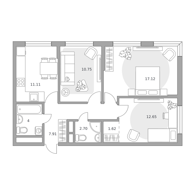 Квартиры сдаются без отделки и межкомнатных перегородок. Окна оснащены двухкамерными стеклопакетами, лоджии будут застеклены однокамерными. Устанавливается входная деревянная дверь, система отопления с горизонтальной разводкой труб и монтажом радиаторов, ставятся приборы учета воды и двухтарифные счетчики электроэнергии.