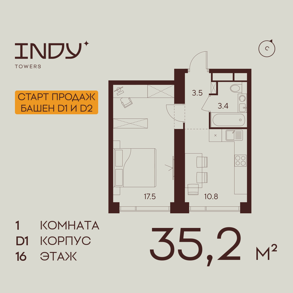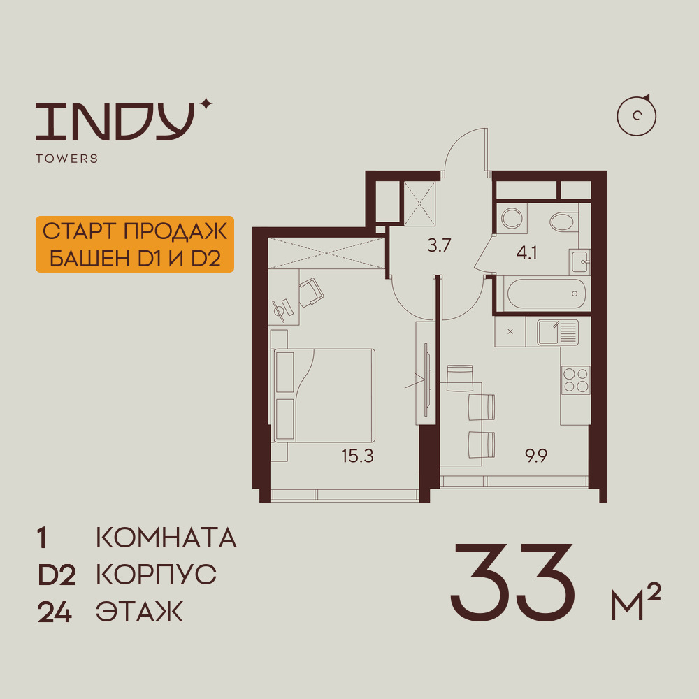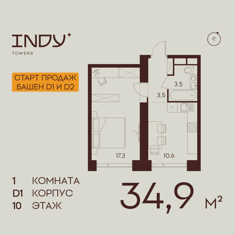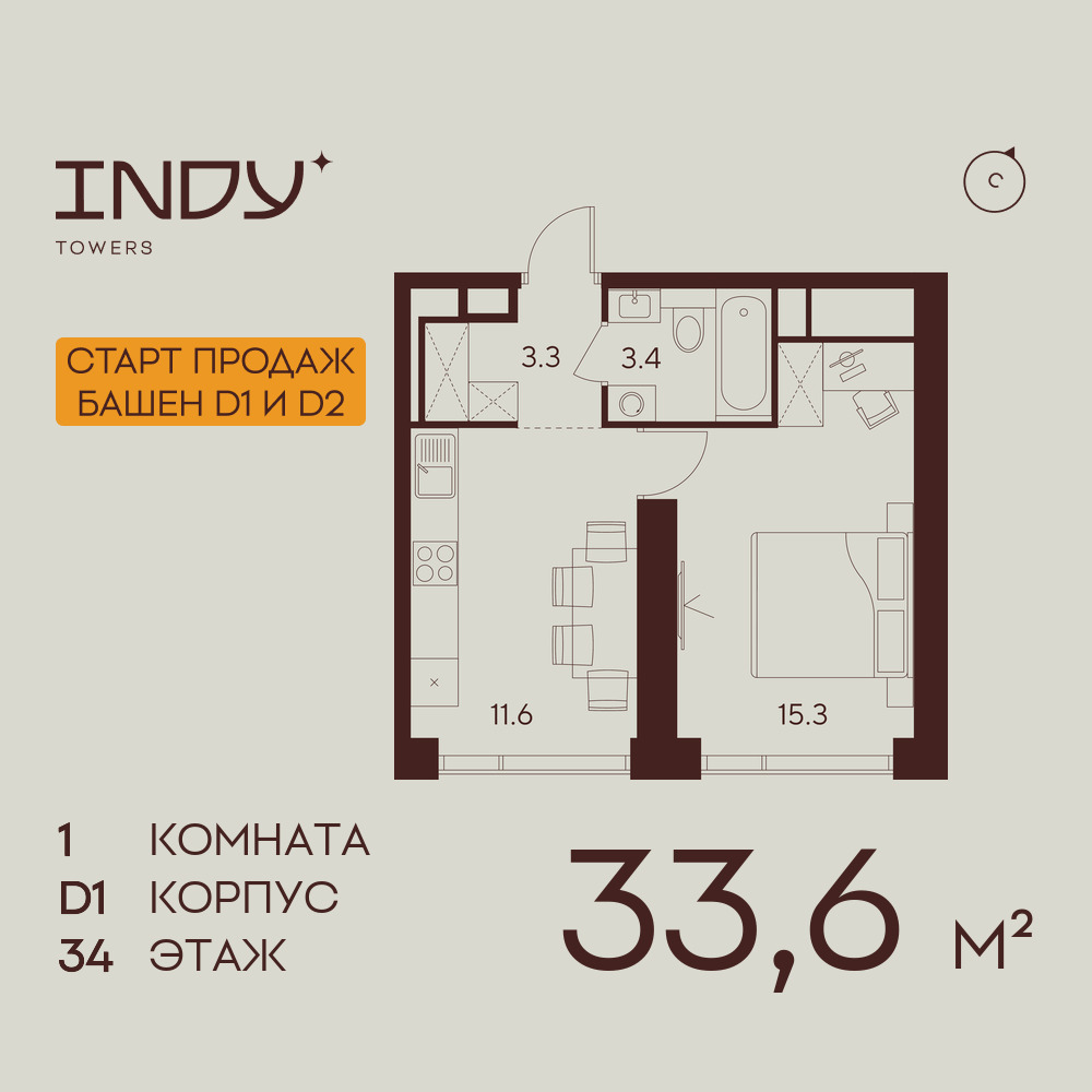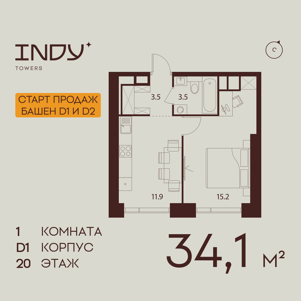 Однокомнатные квартиры в ЖК INDY TOWERS (Инди Тауэрз)