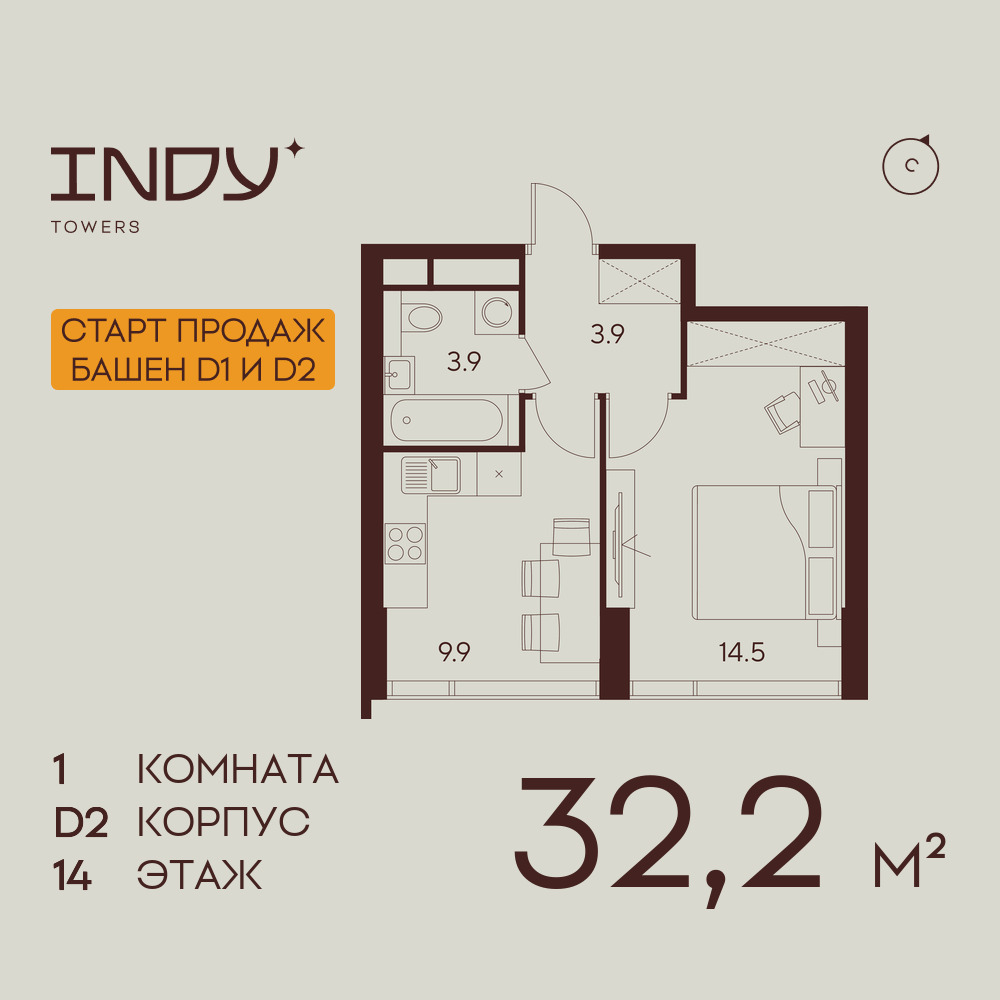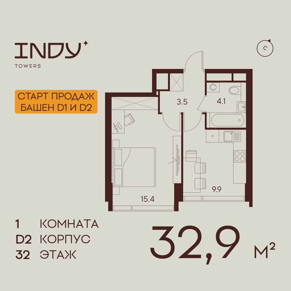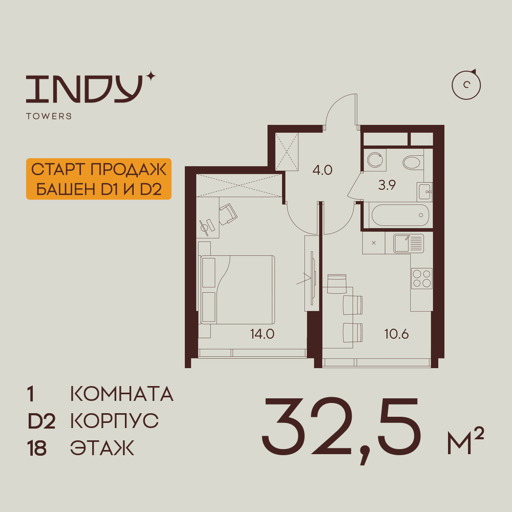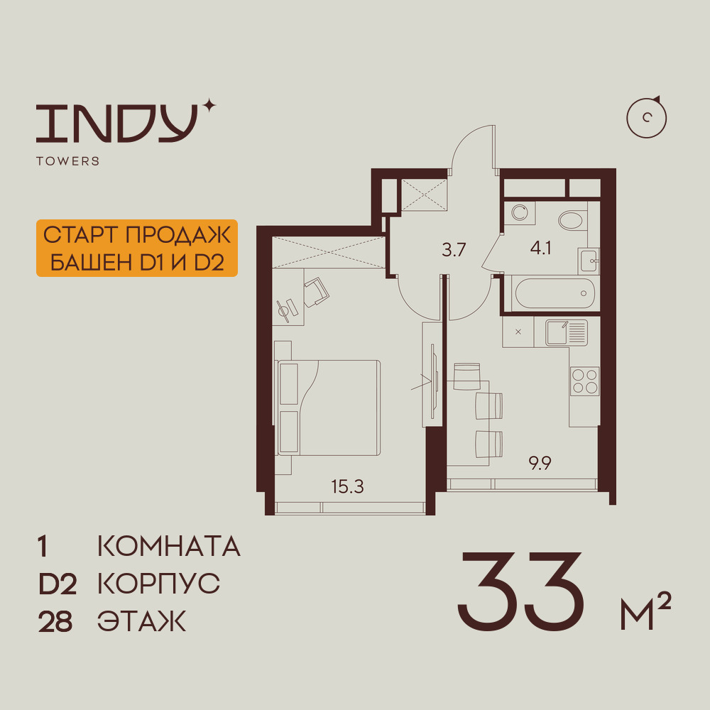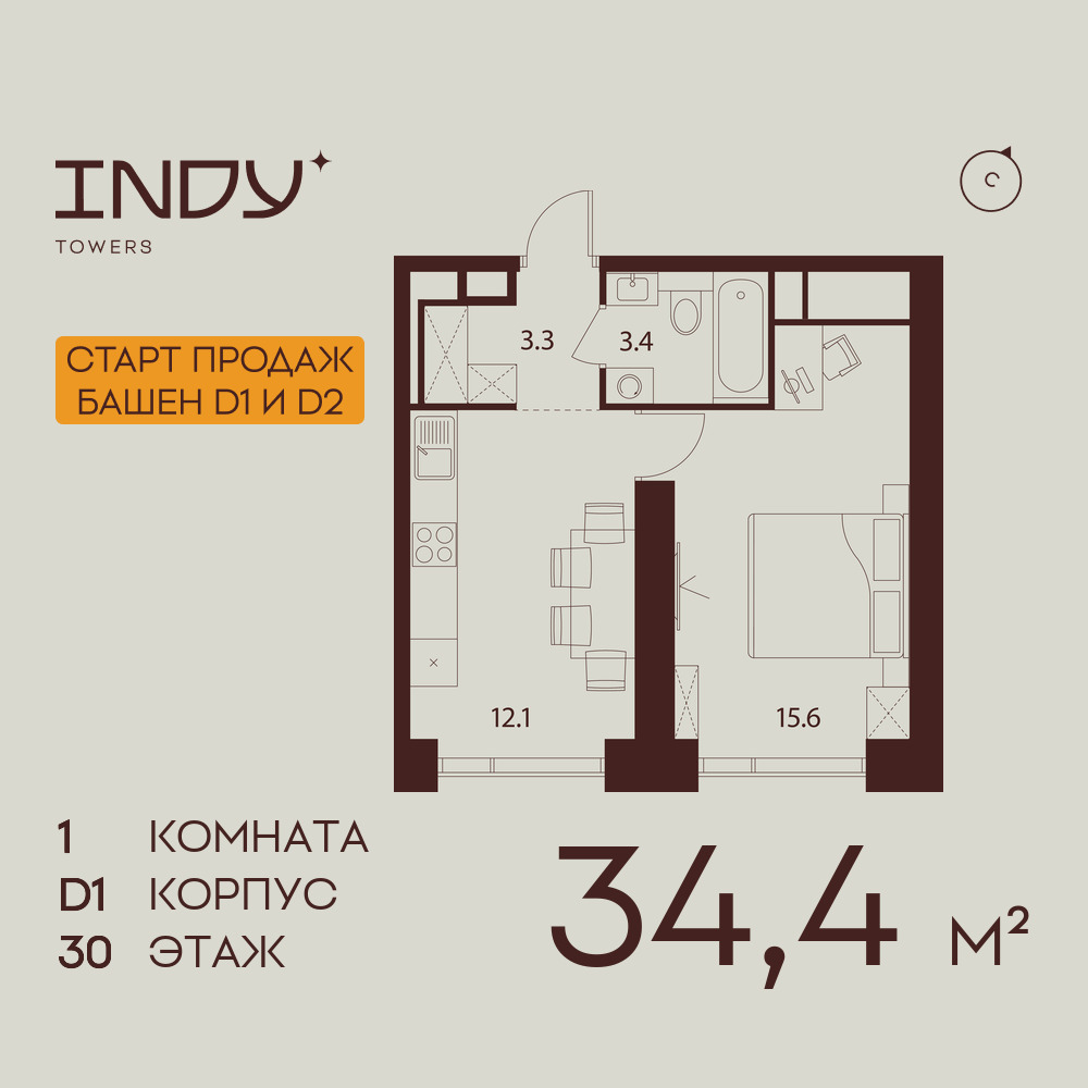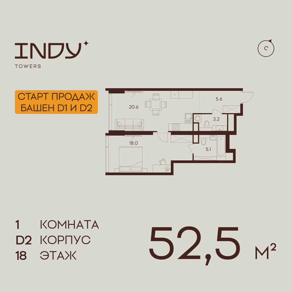 Однокомнатные квартиры в ЖК INDY TOWERS (Инди Тауэрз)