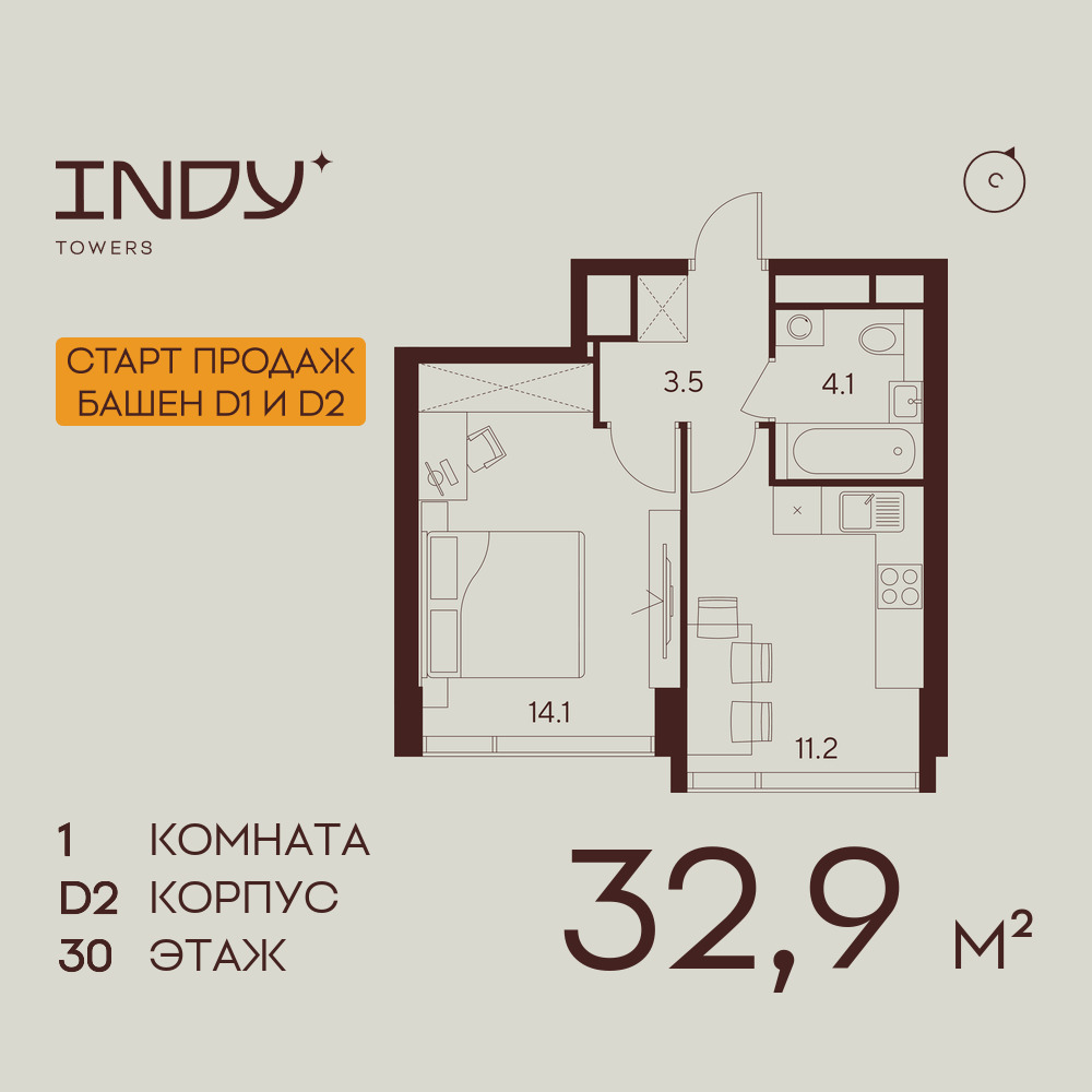 Однокомнатные квартиры в ЖК INDY TOWERS (Инди Тауэрз)