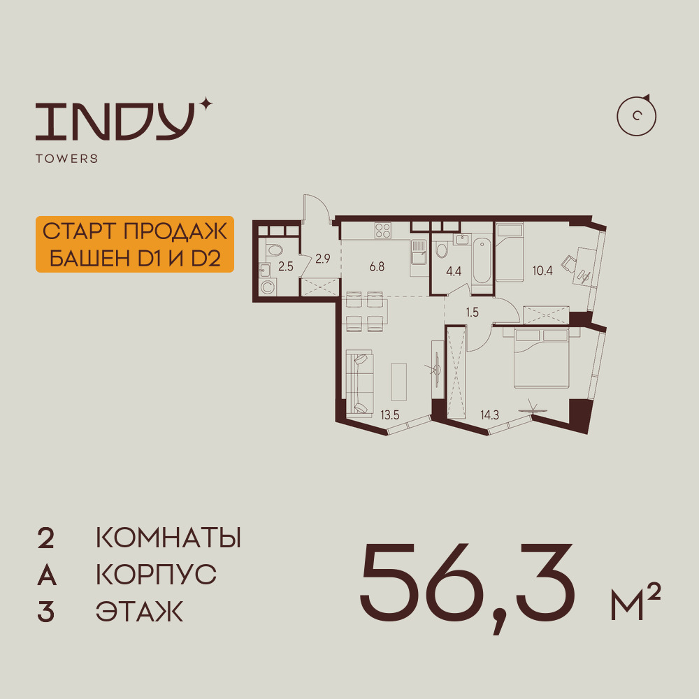 Двухкомнатные квартиры в ЖК INDY TOWERS (Инди Тауэрз)