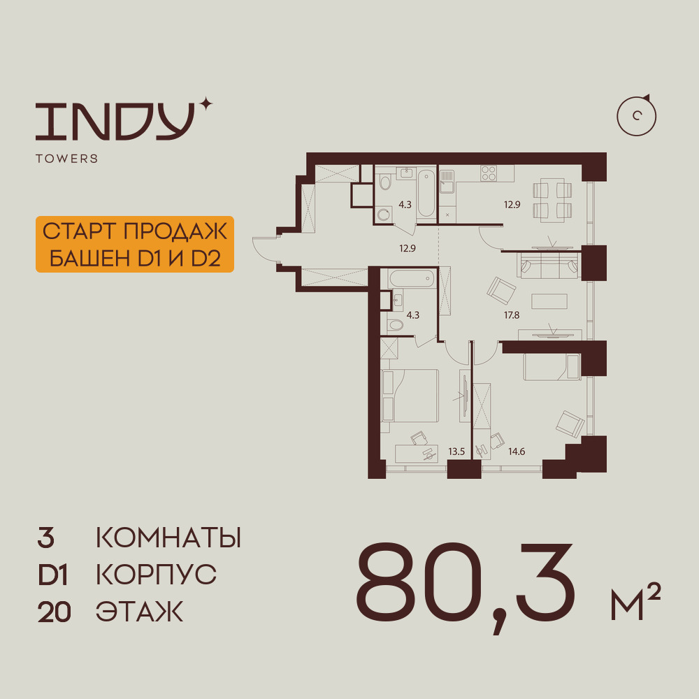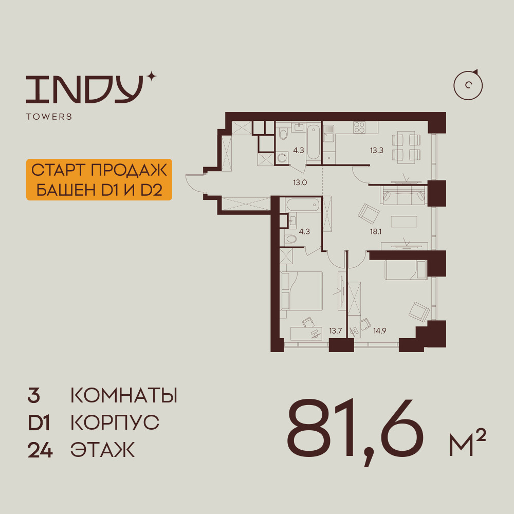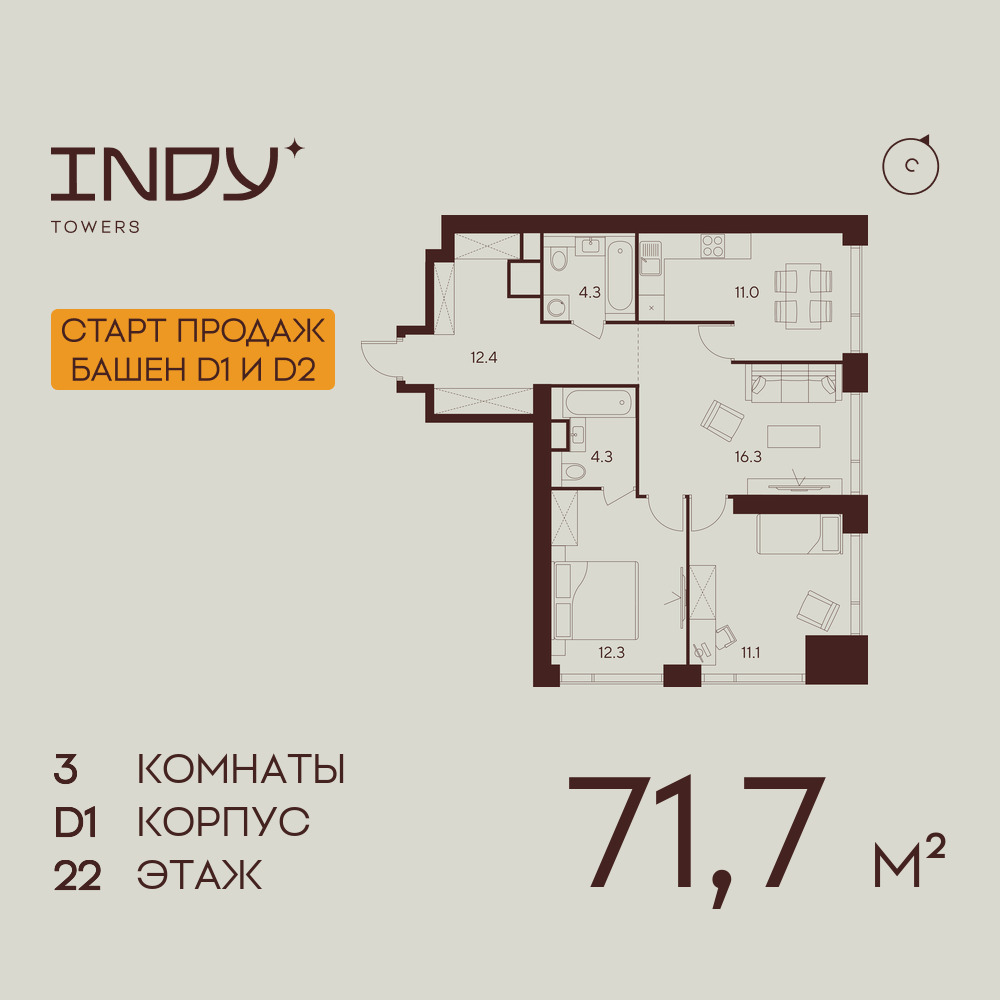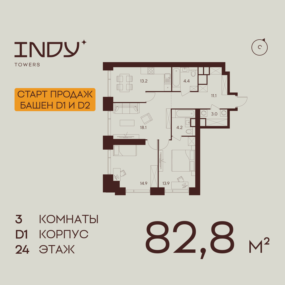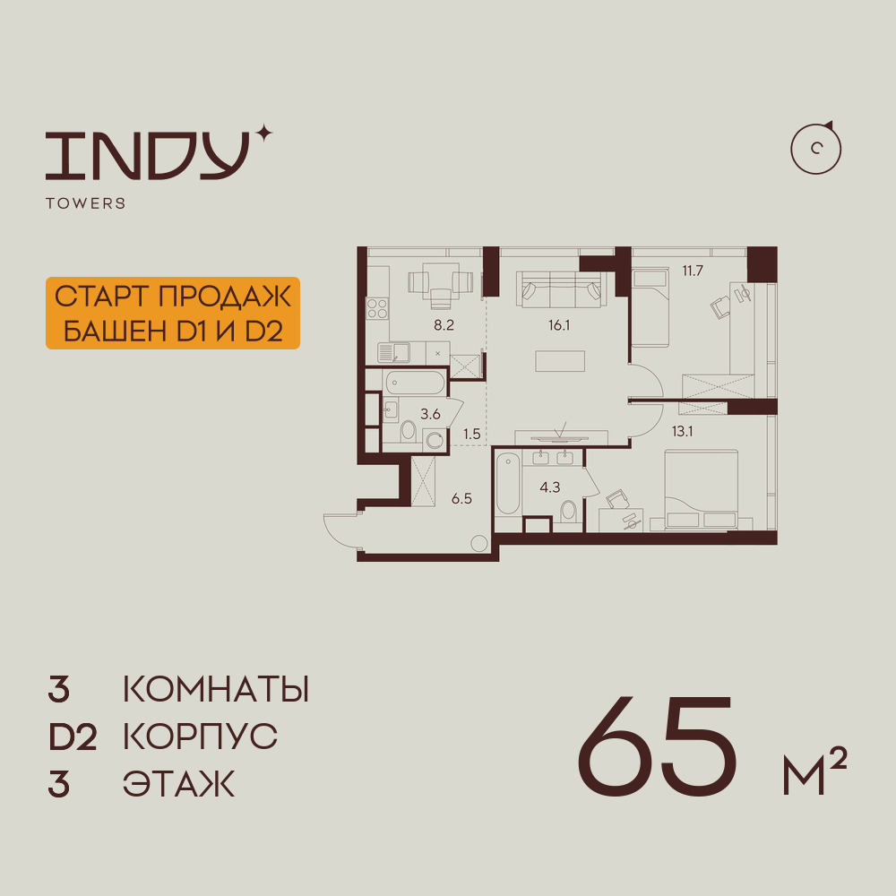Трехкомнатные квартиры в ЖК INDY TOWERS (Инди Тауэрз)