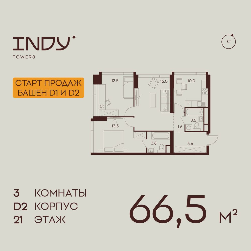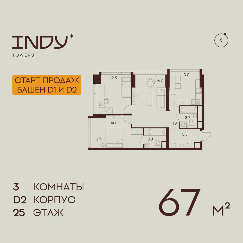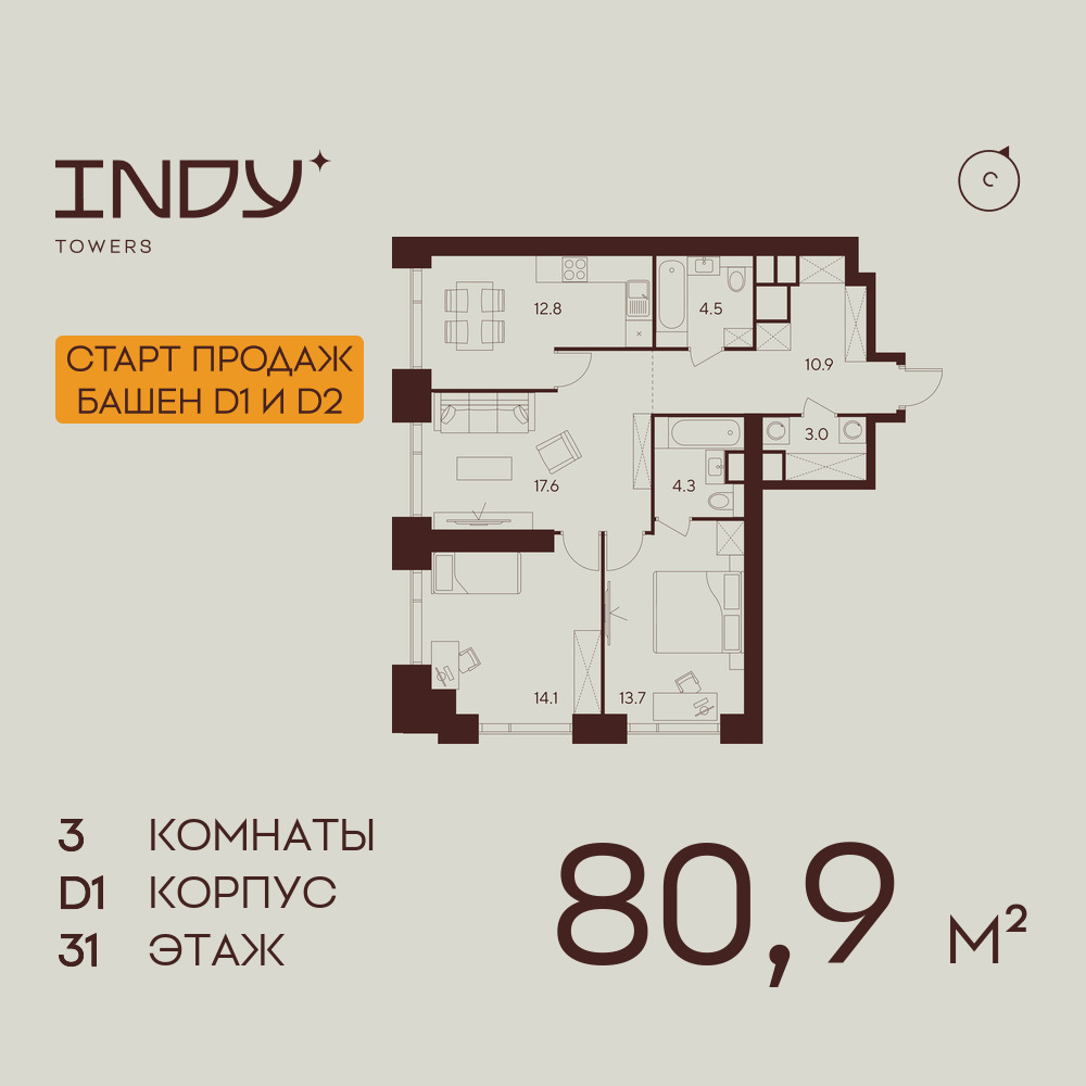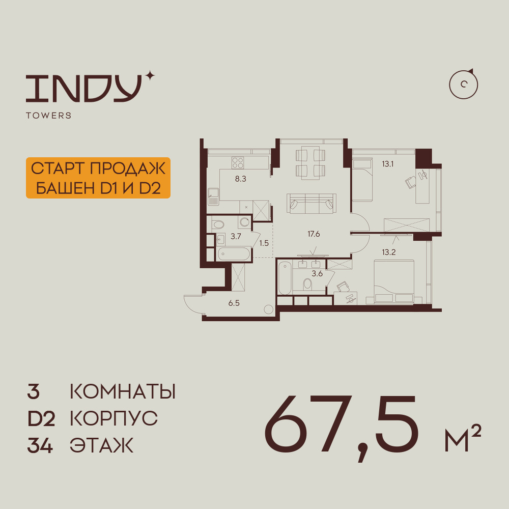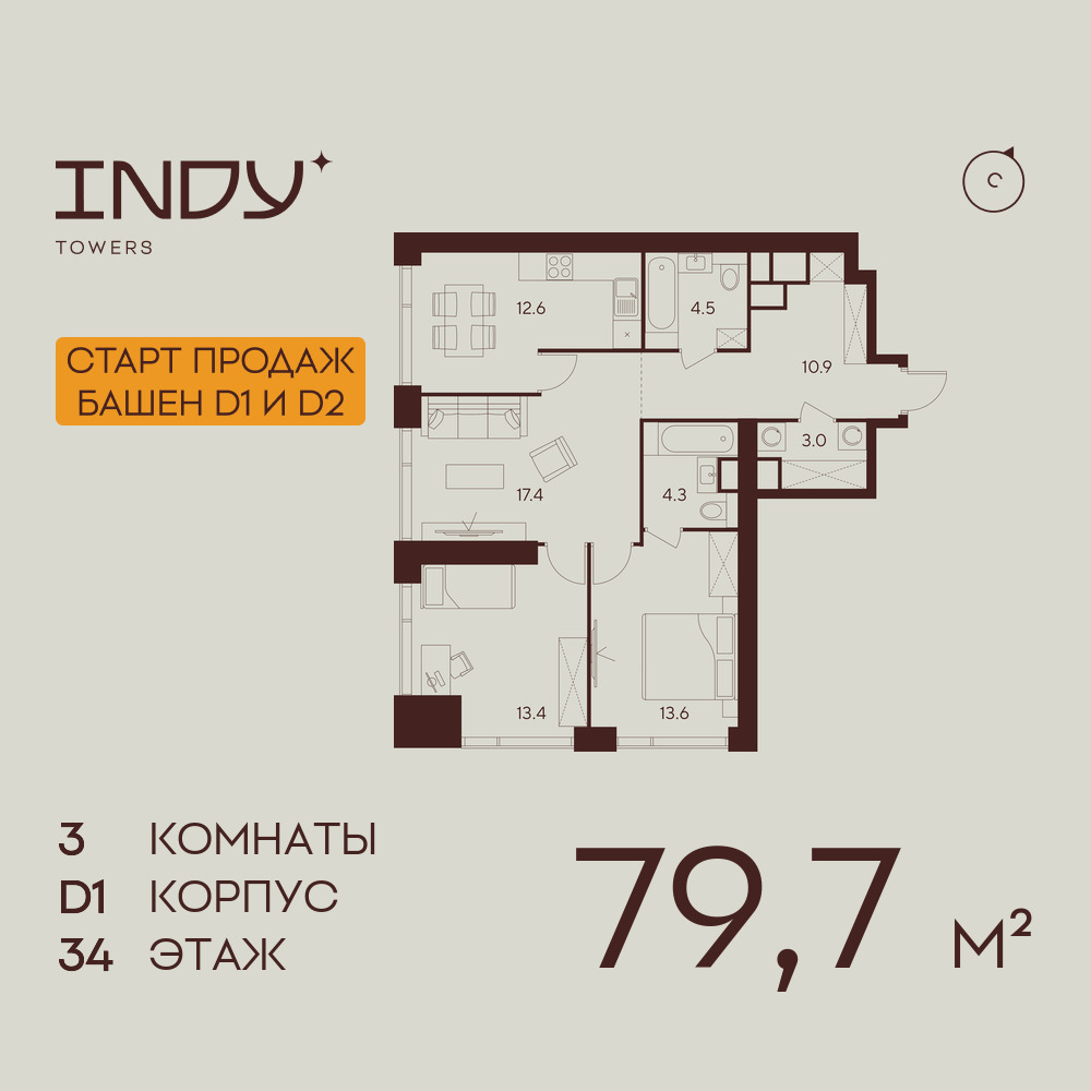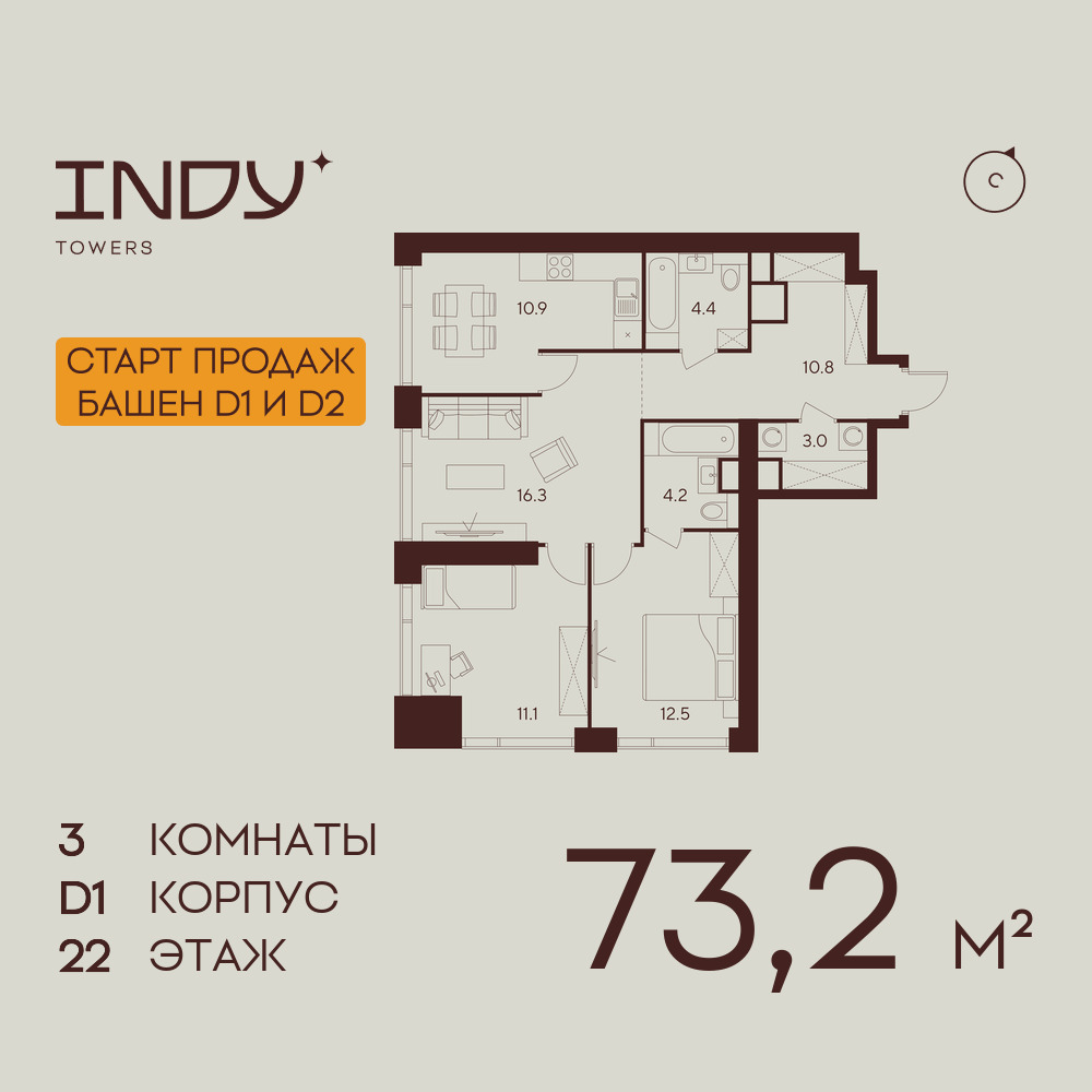 Трехкомнатные квартиры в ЖК INDY TOWERS (Инди Тауэрз)
