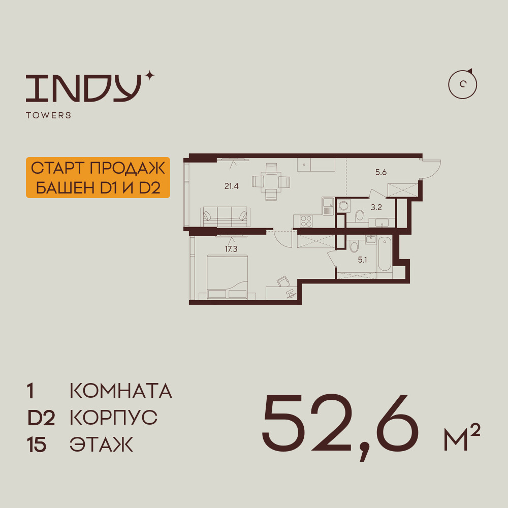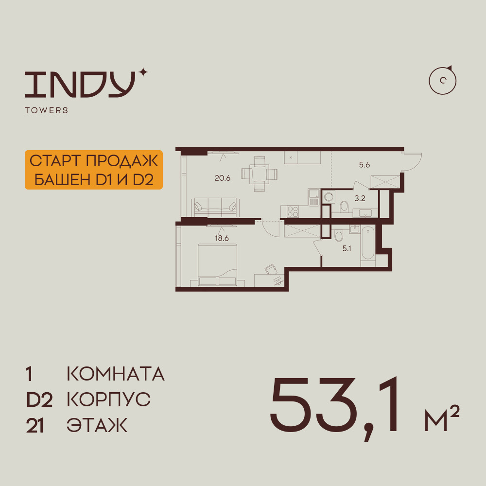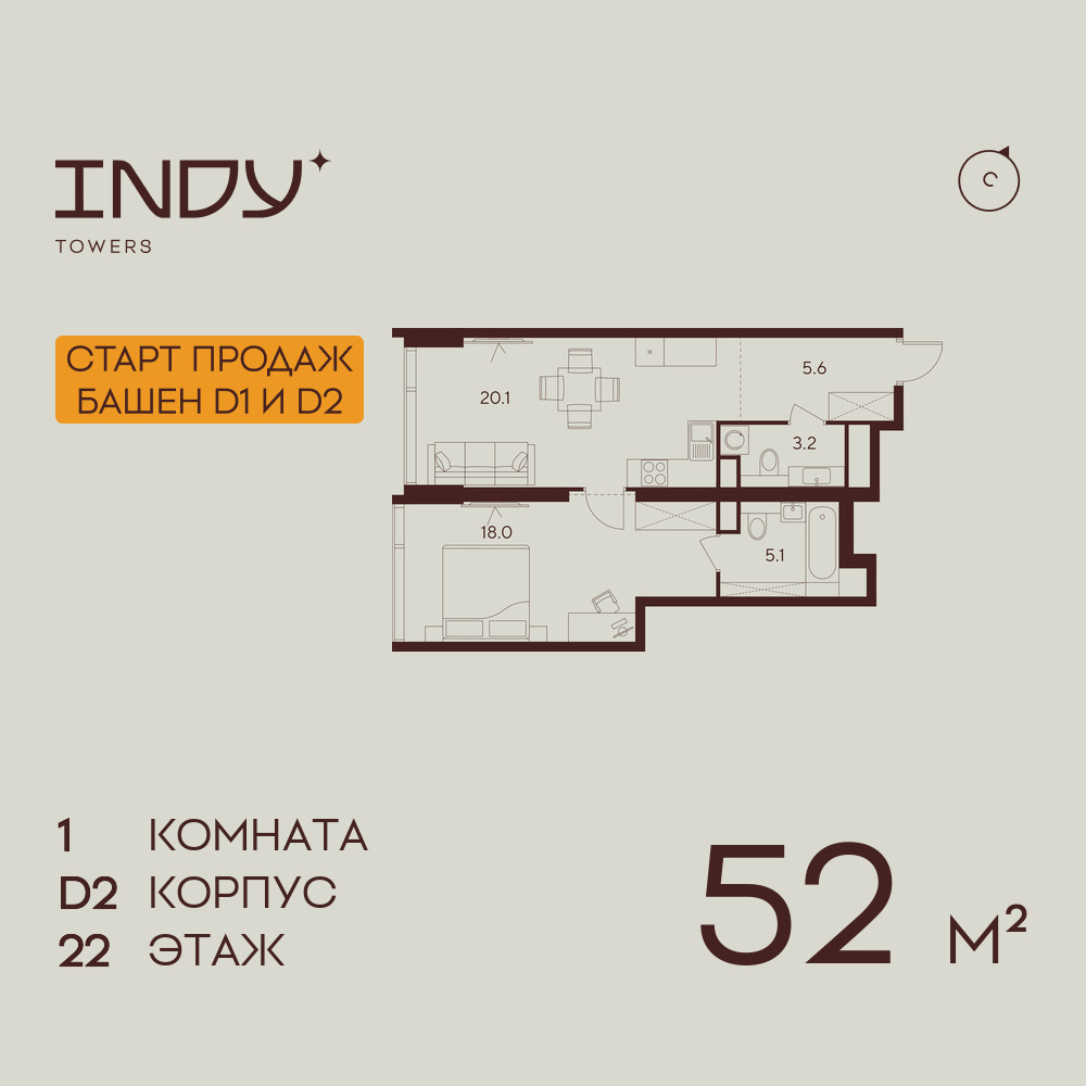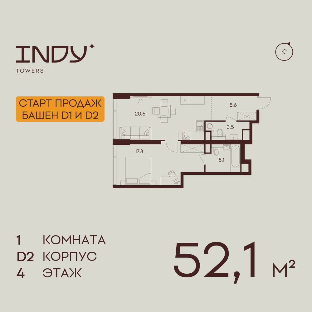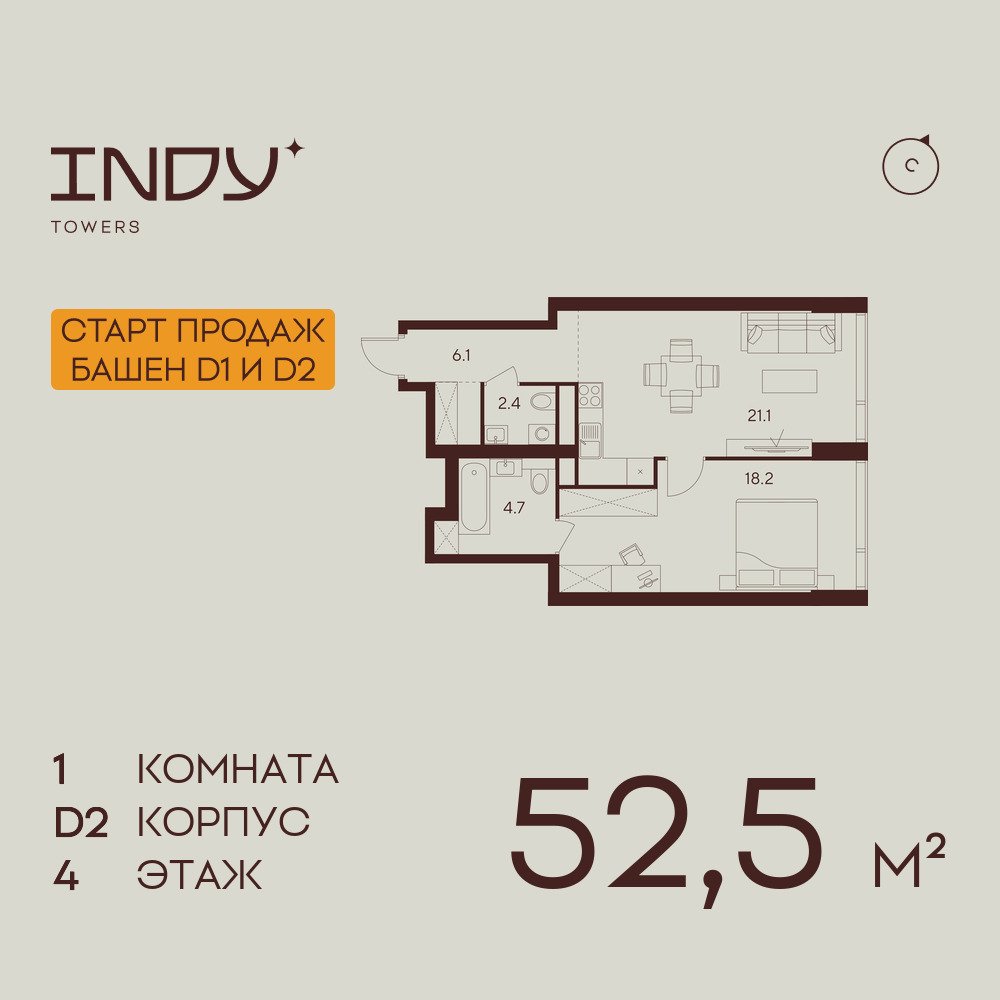 Евро однокомнатные квартиры в ЖК INDY TOWERS (Инди Тауэрз)