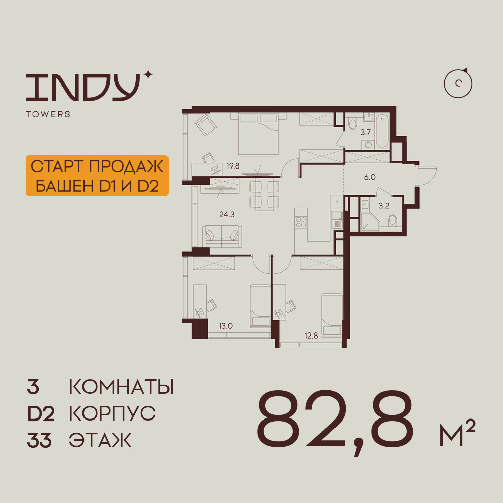 Евро трехкомнатные квартиры в ЖК INDY TOWERS (Инди Тауэрз)