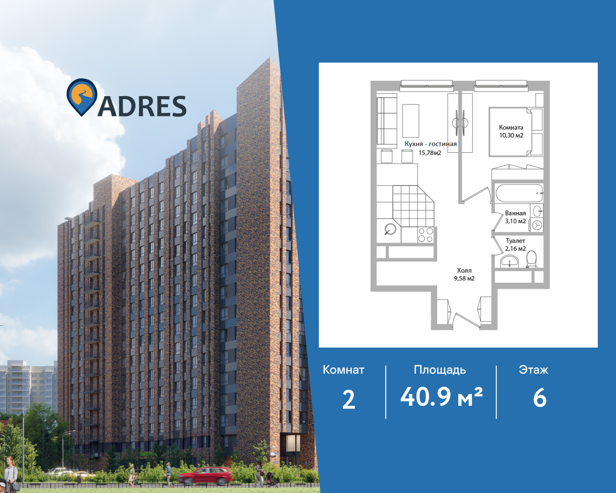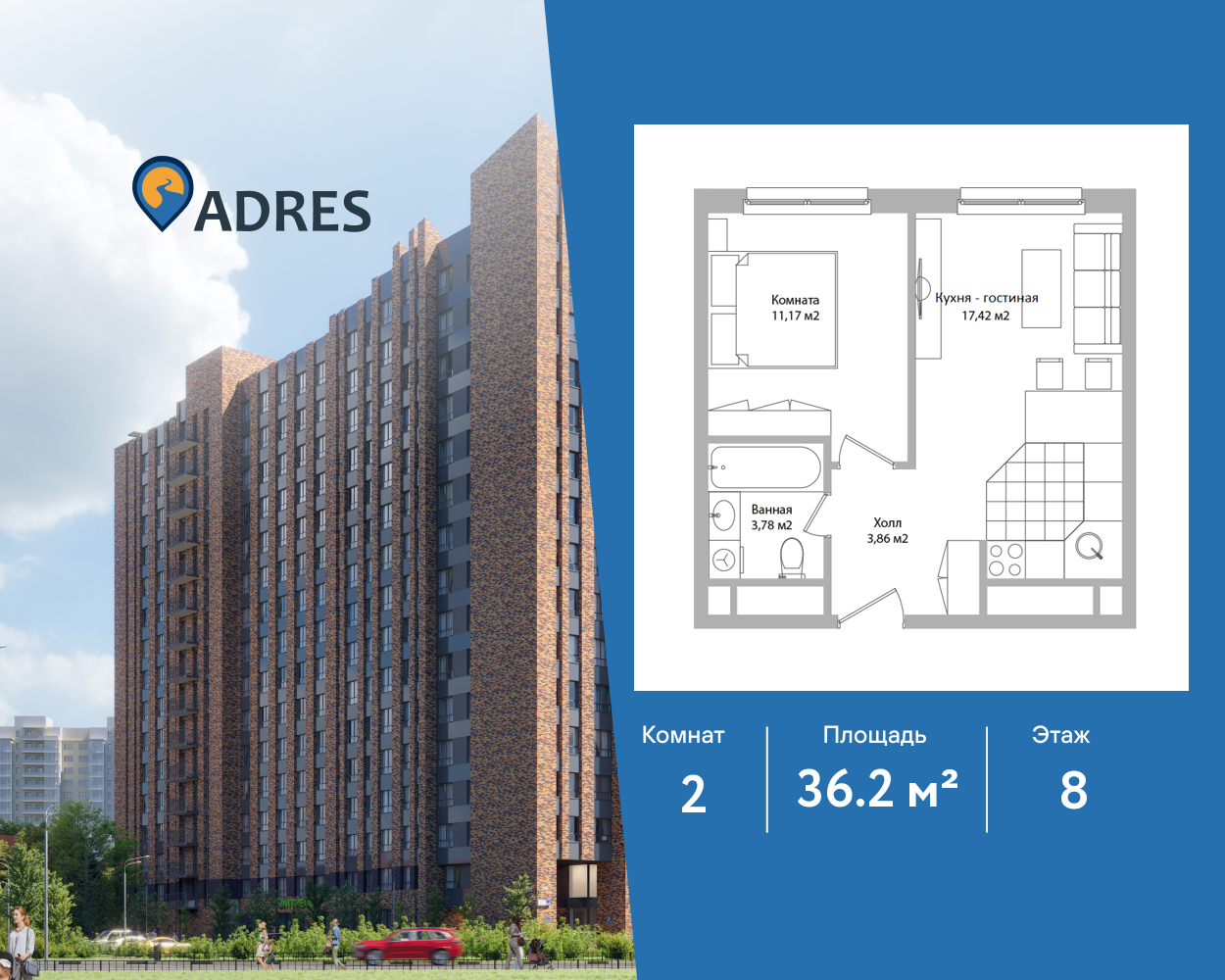 Двухкомнатные квартиры в Инвест-отель Адрес
