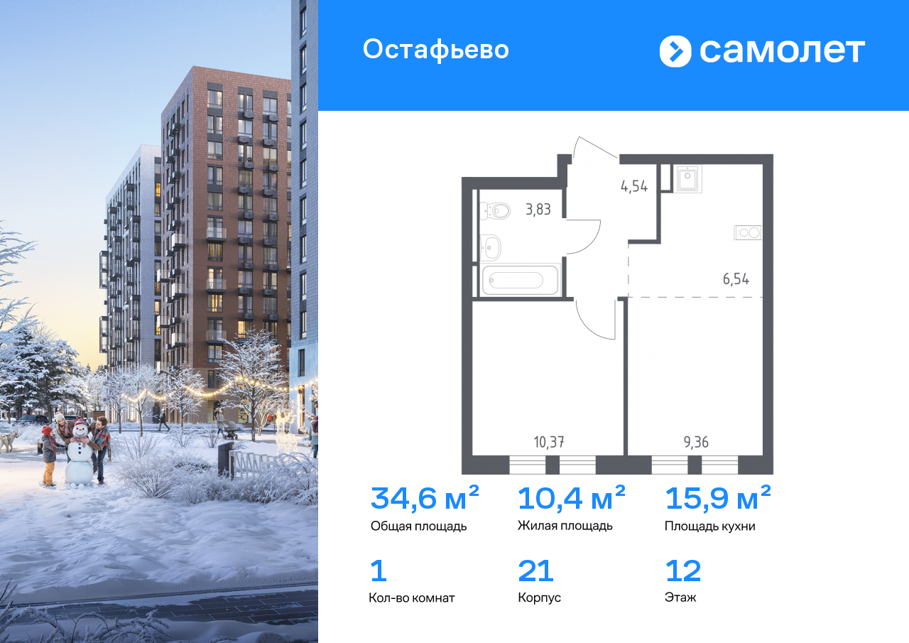 Однокомнатные квартиры в ЖК «Остафьево»