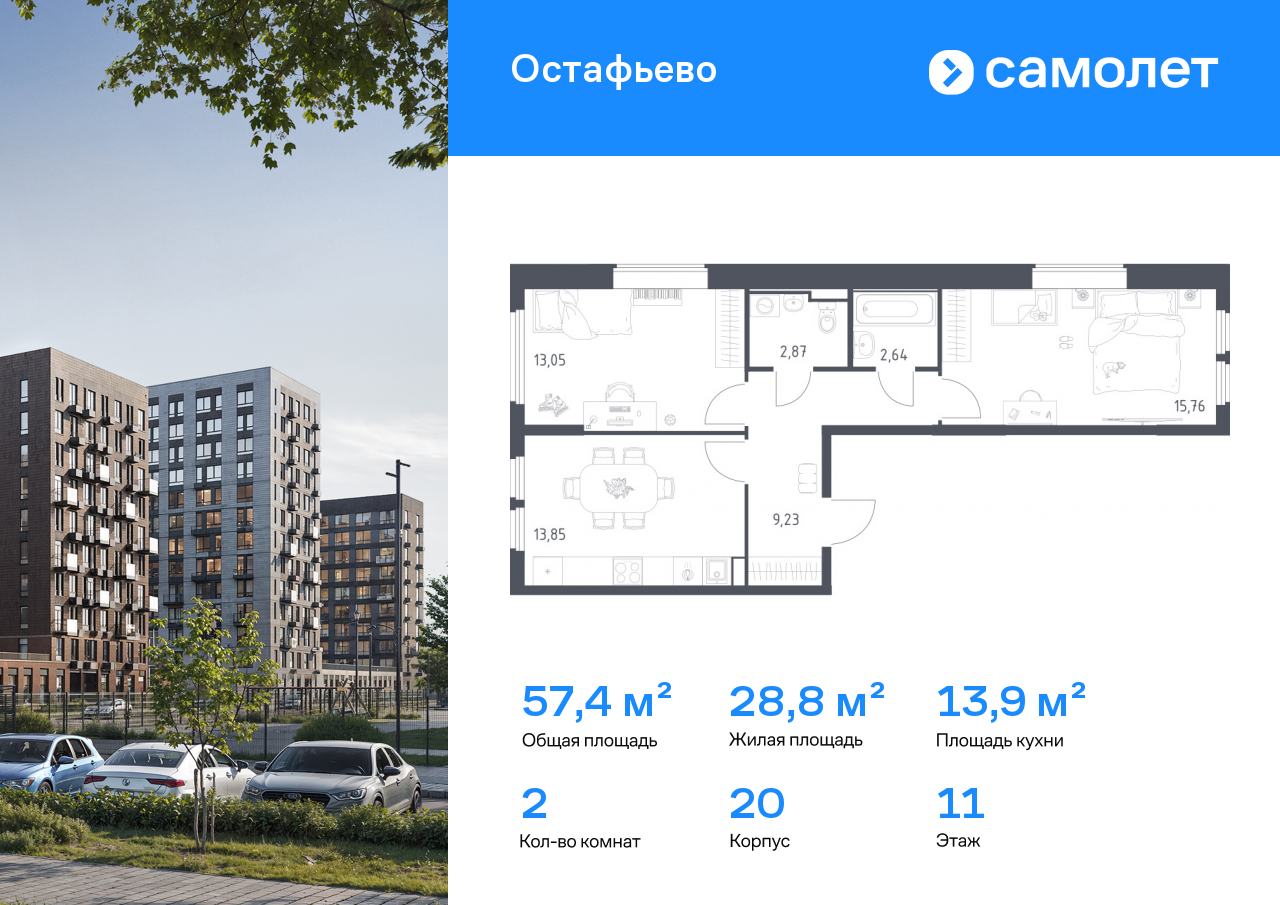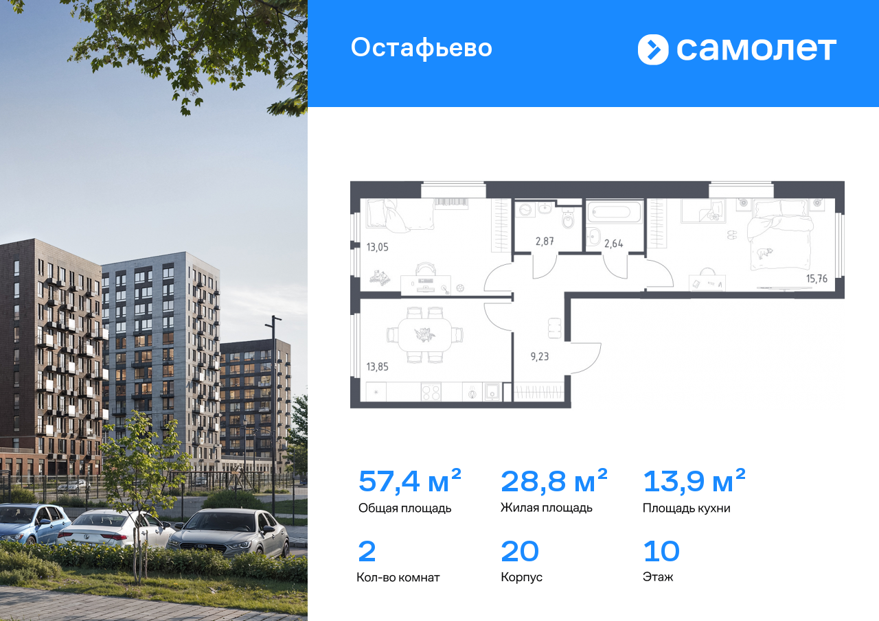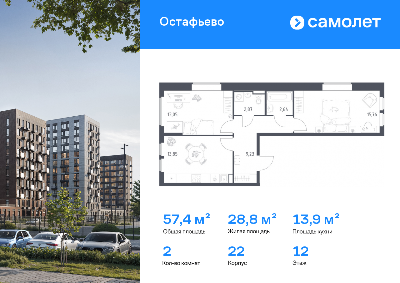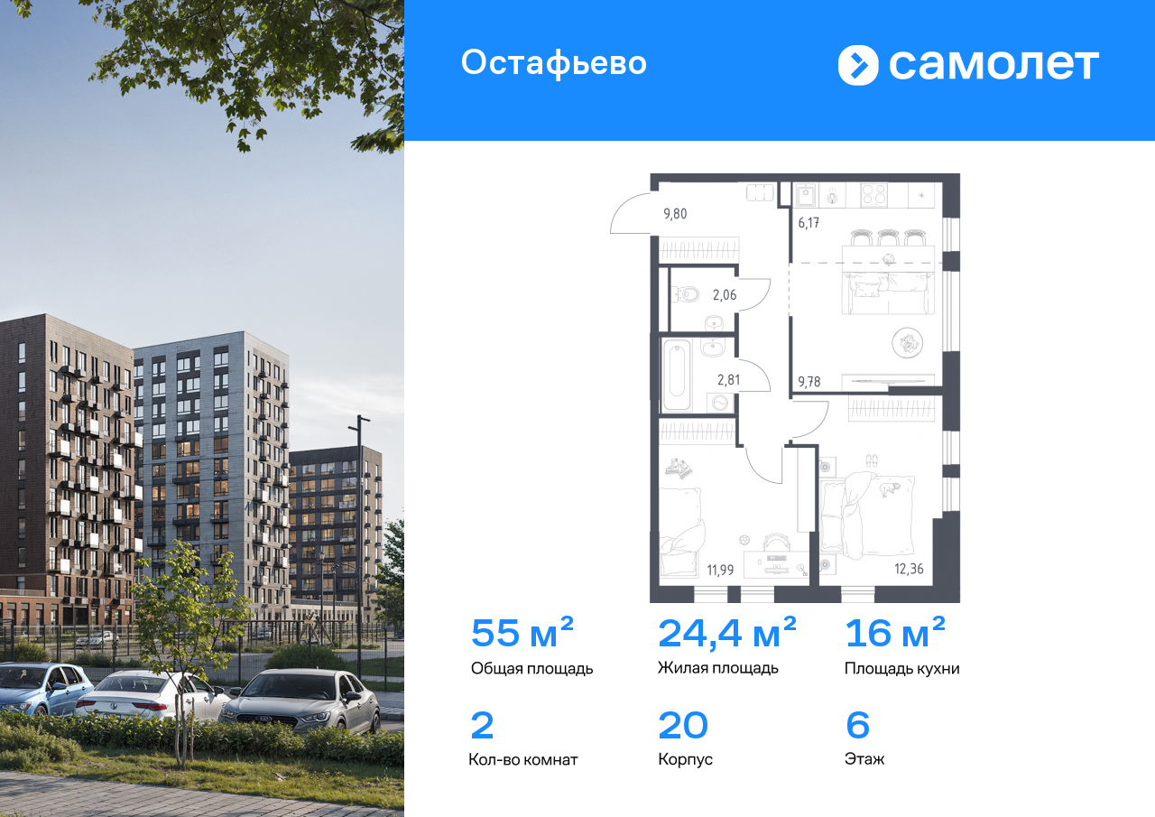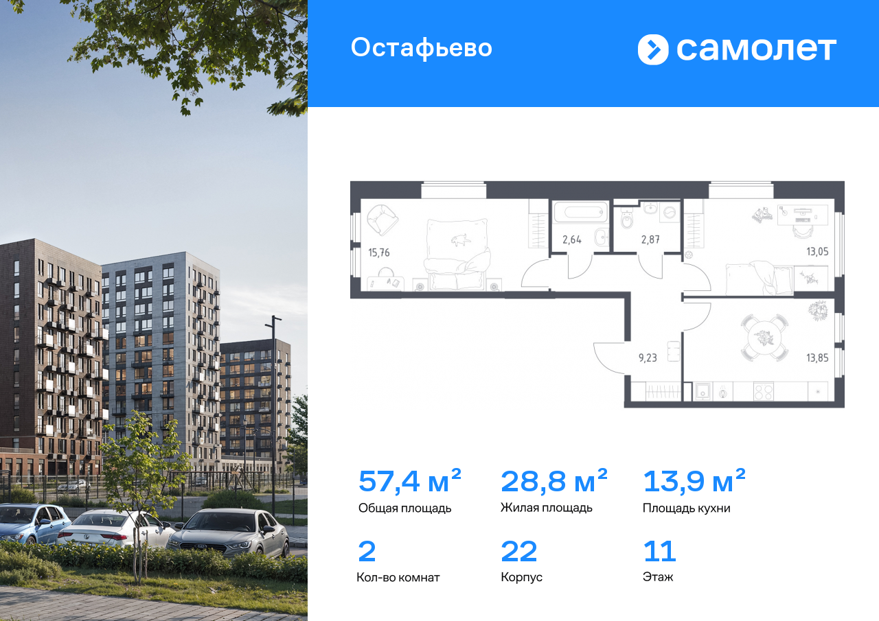 Двухкомнатные квартиры в ЖК «Остафьево»