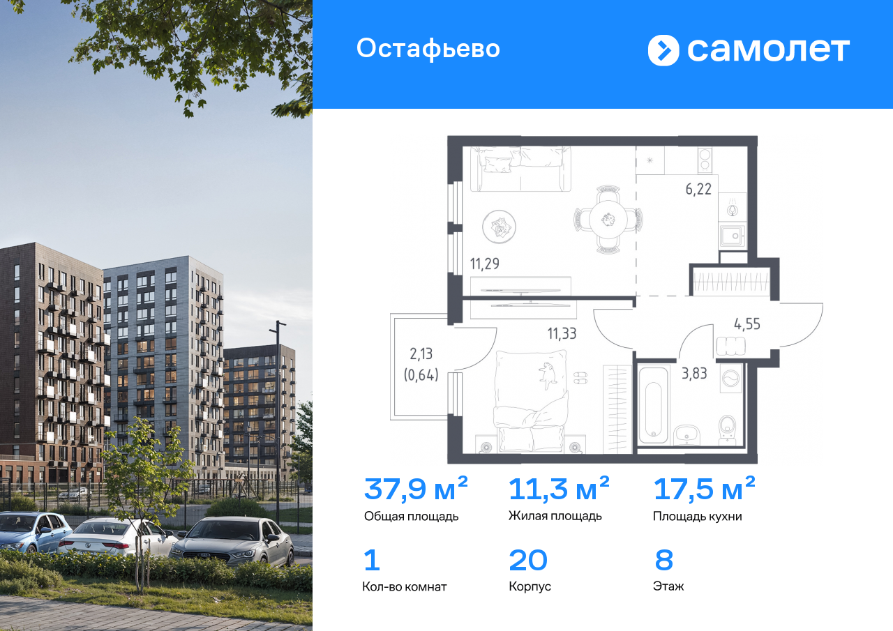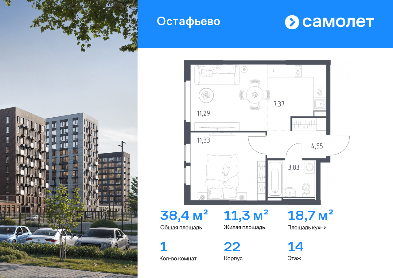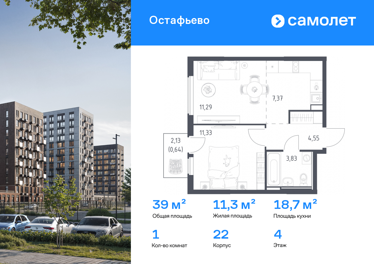Евро однокомнатные квартиры в ЖК «Остафьево»