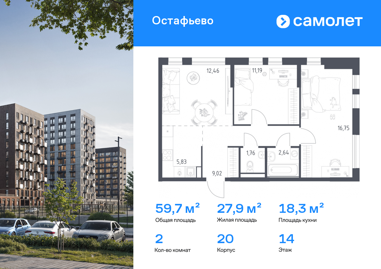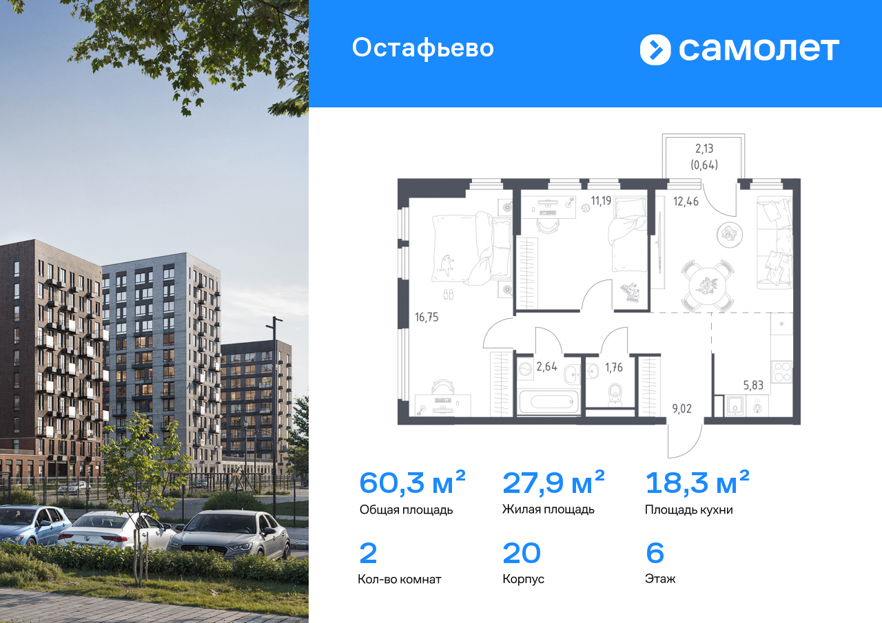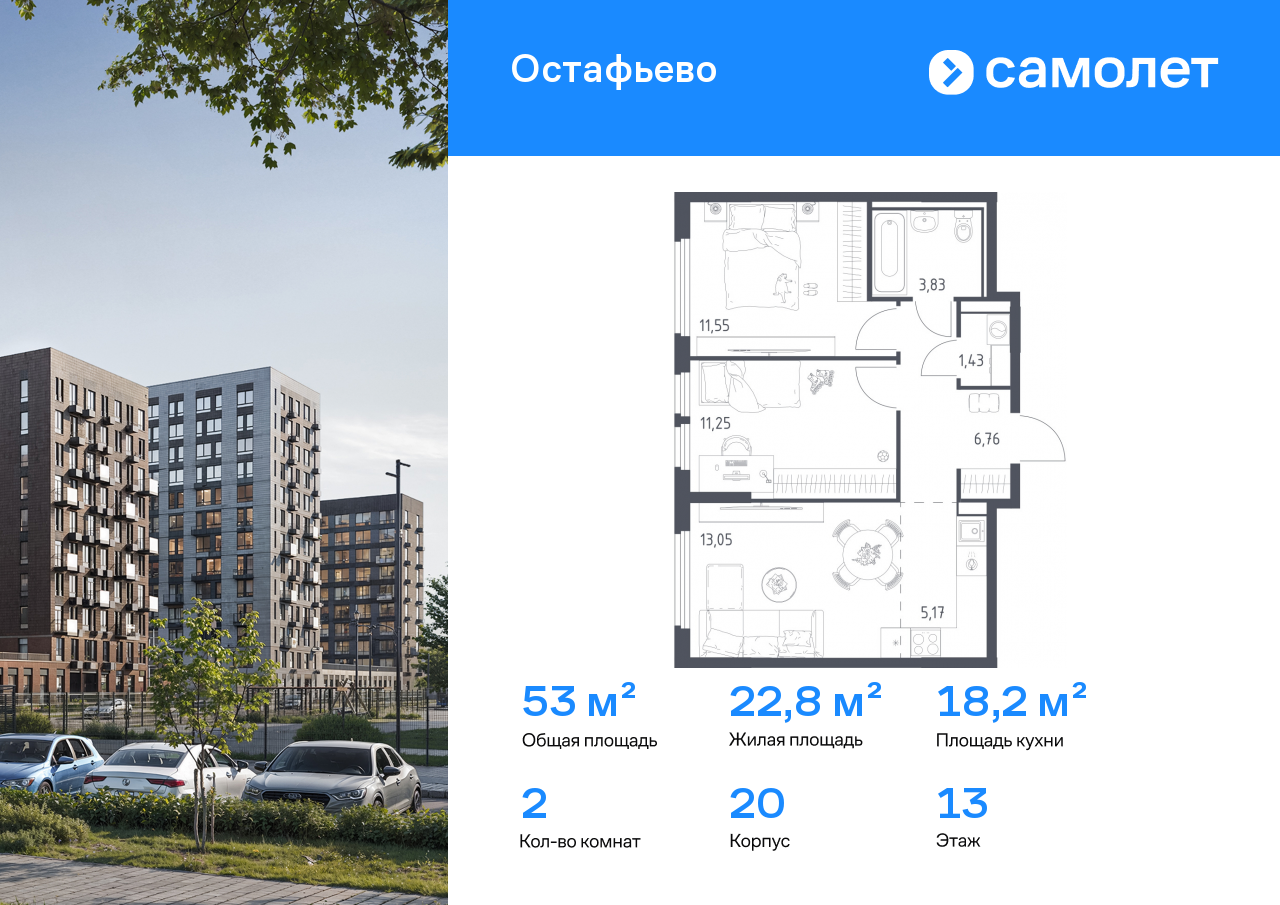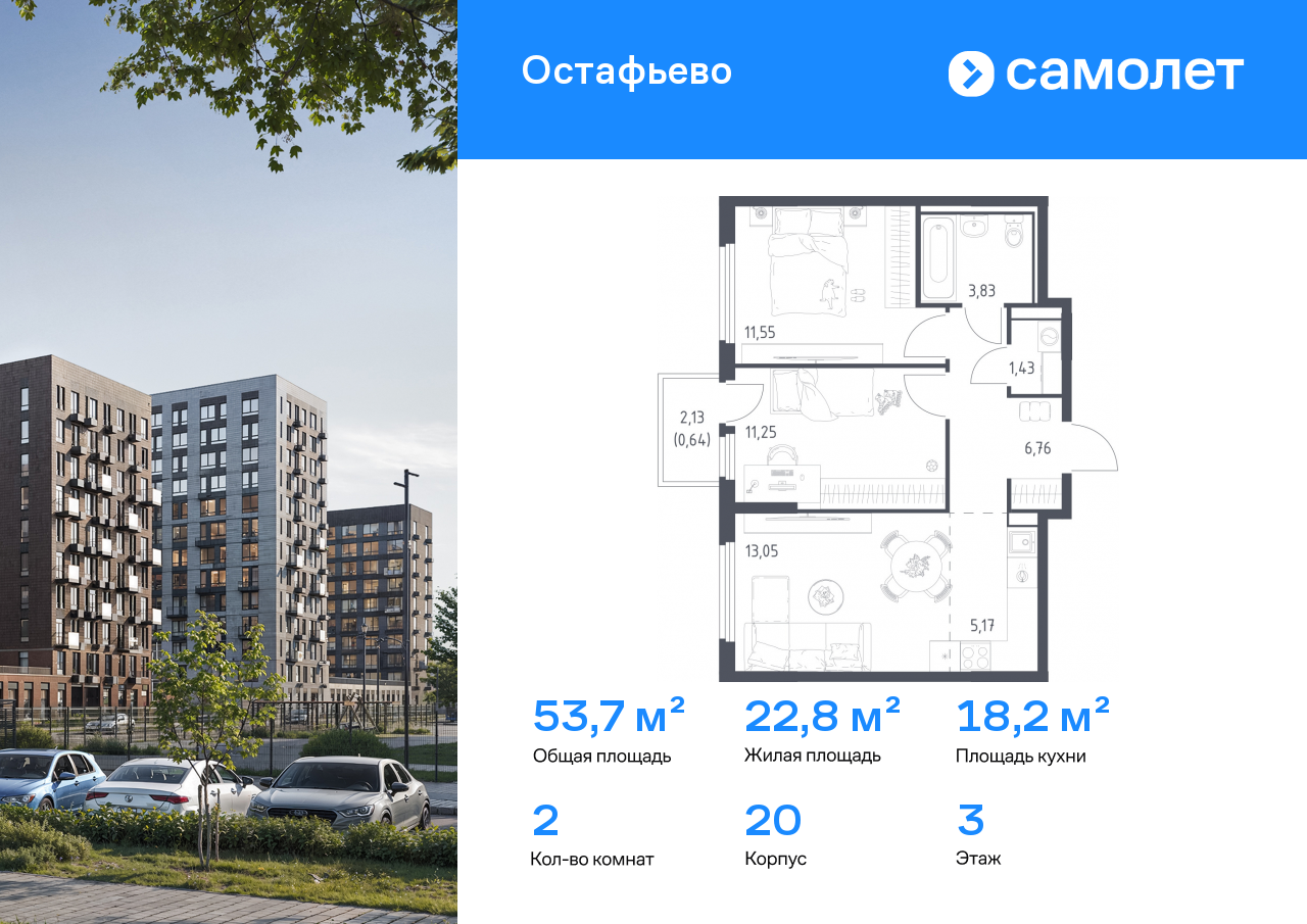 Евро двухкомнатные квартиры в ЖК «Остафьево»