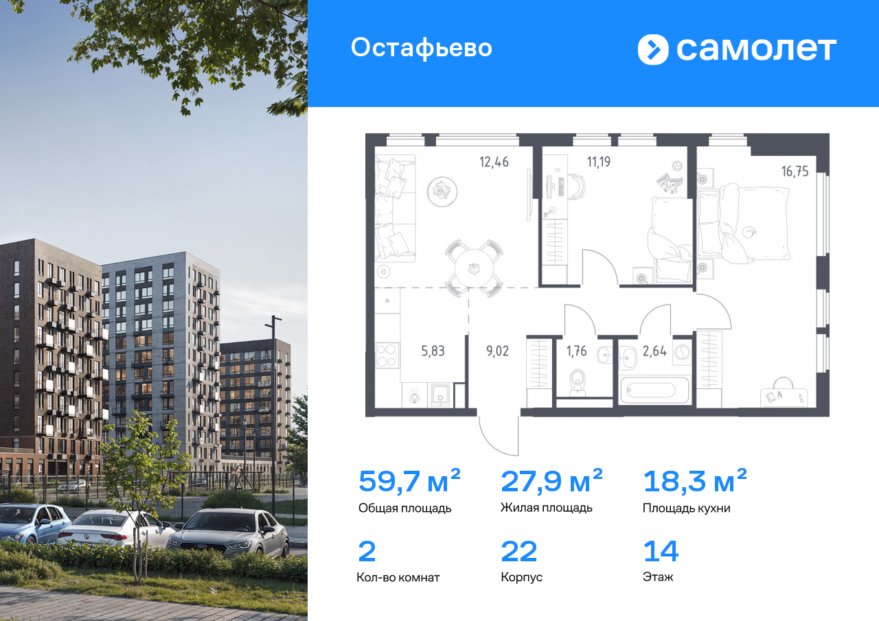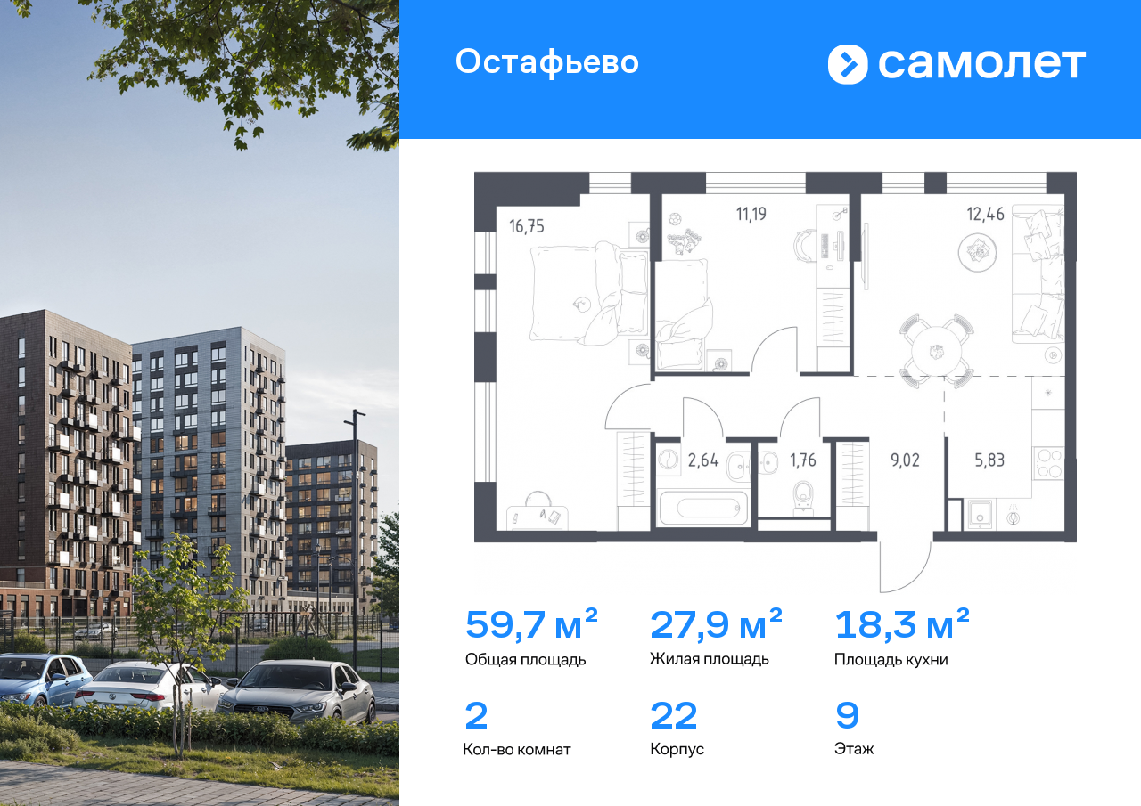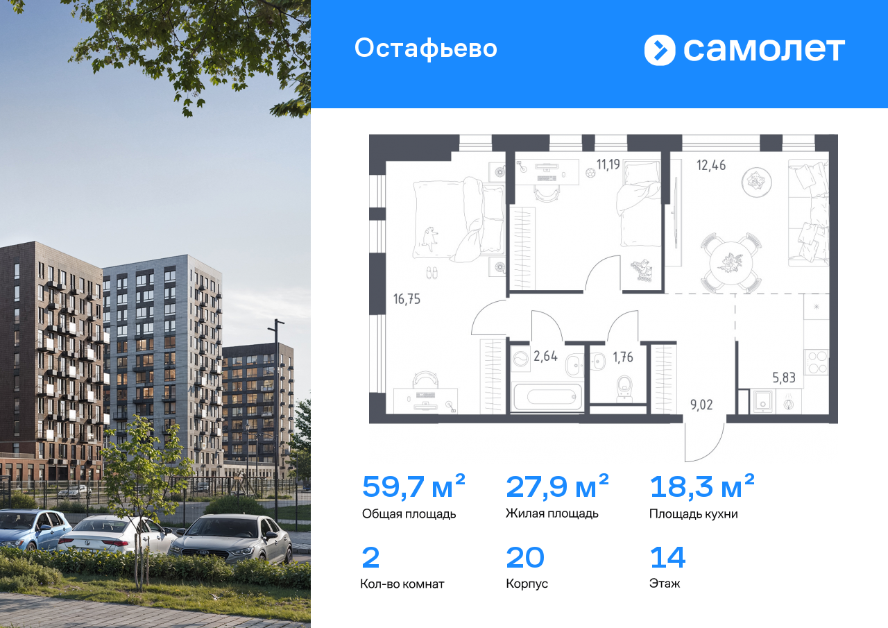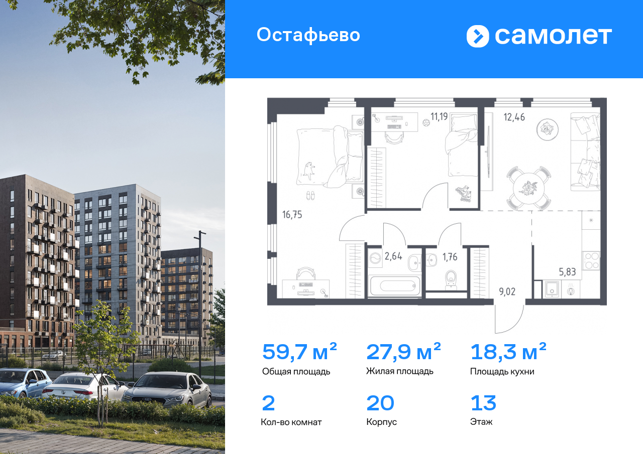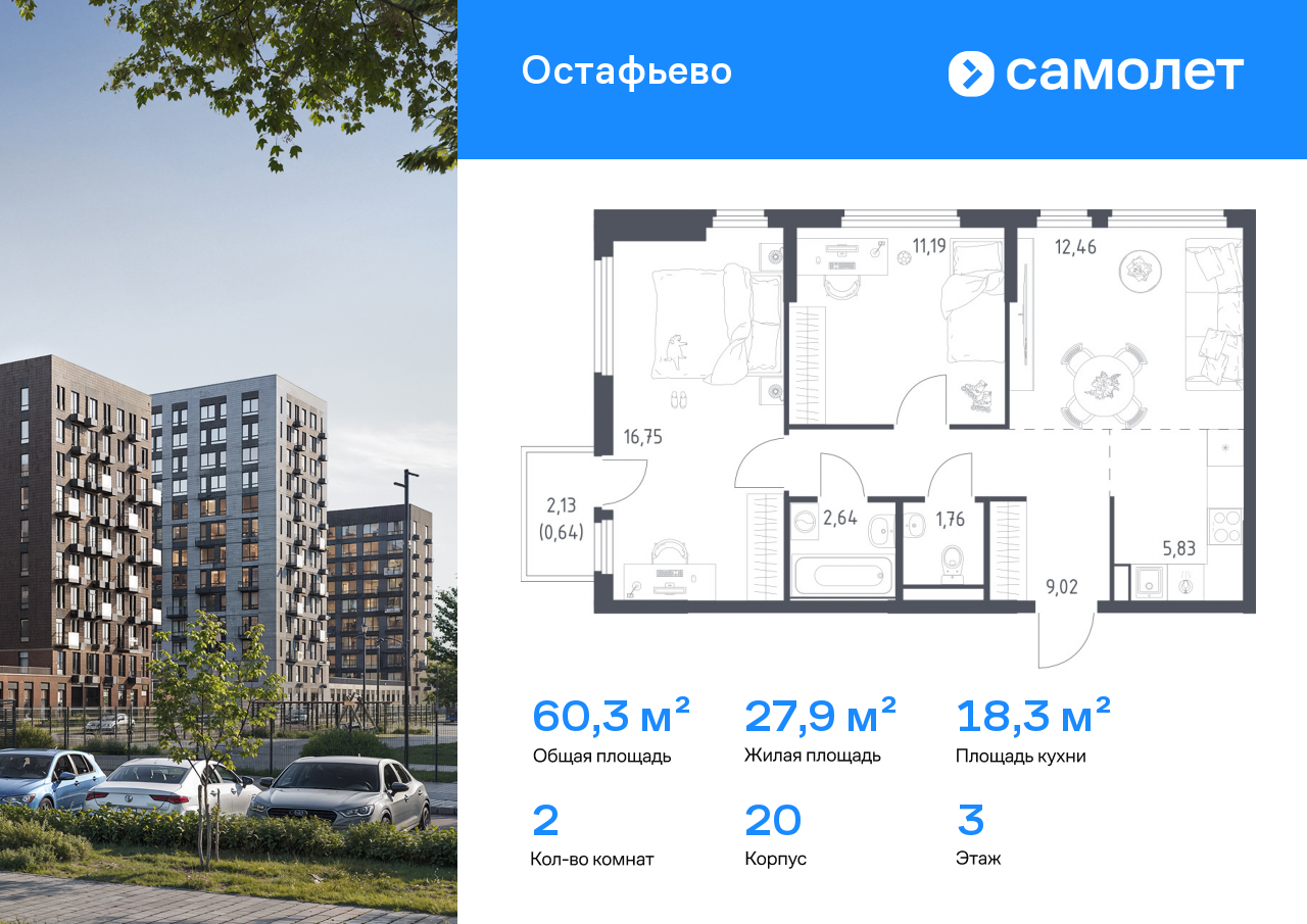 Евро двухкомнатные квартиры в ЖК «Остафьево»