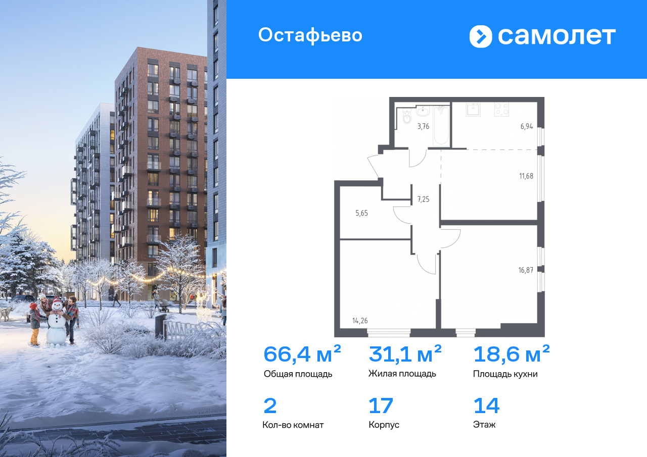 Евро двухкомнатные квартиры в ЖК «Остафьево»
