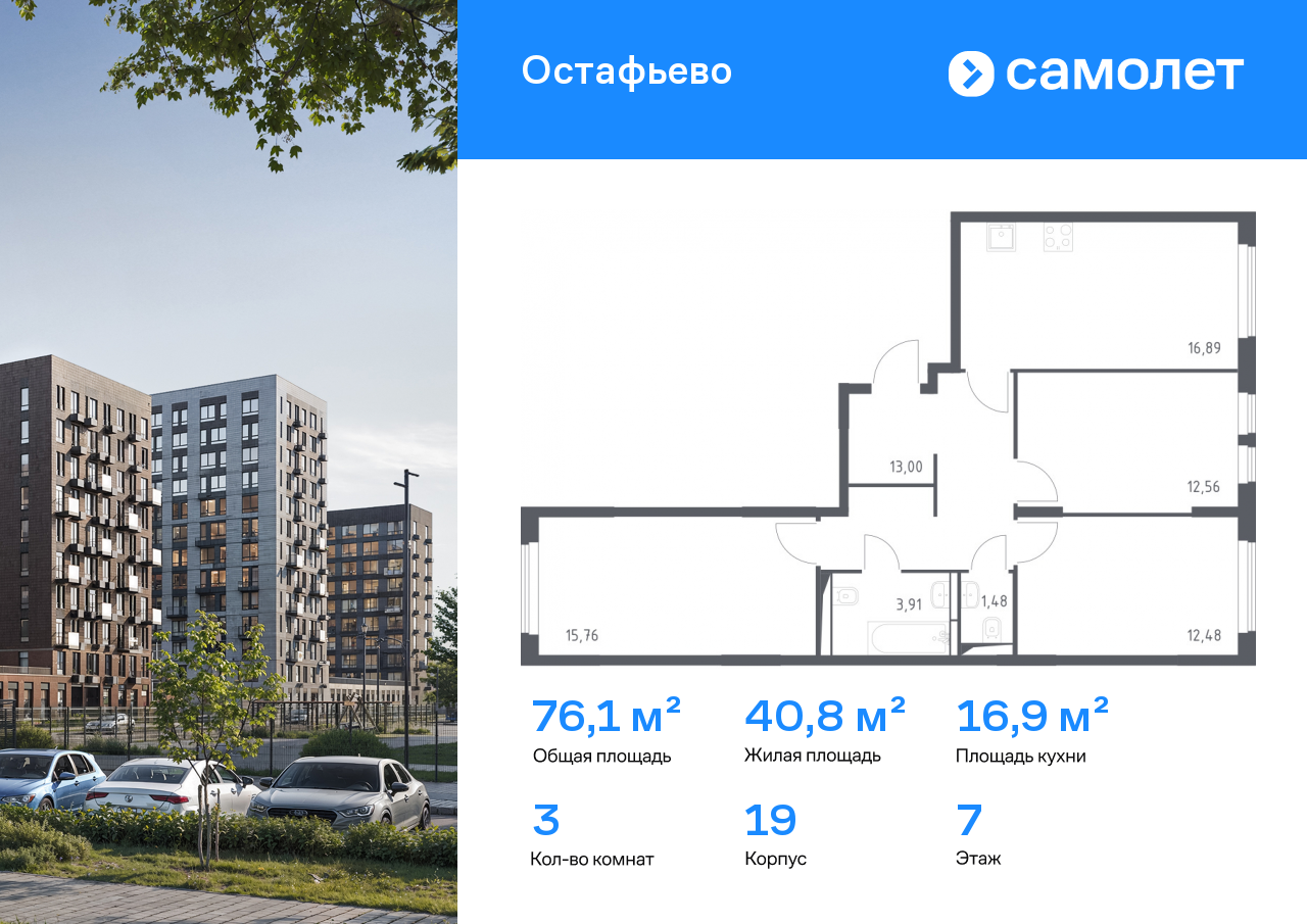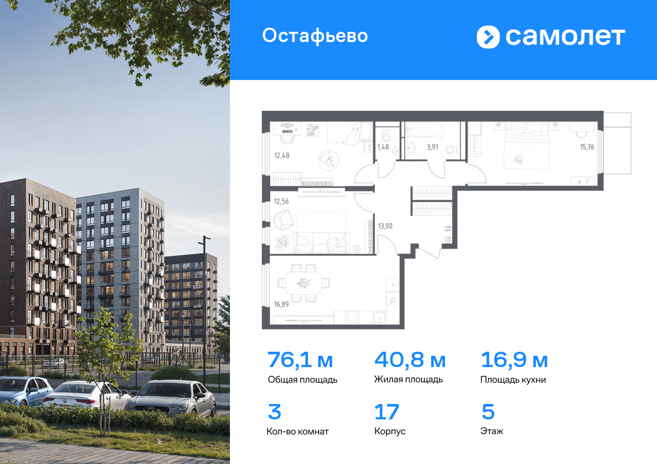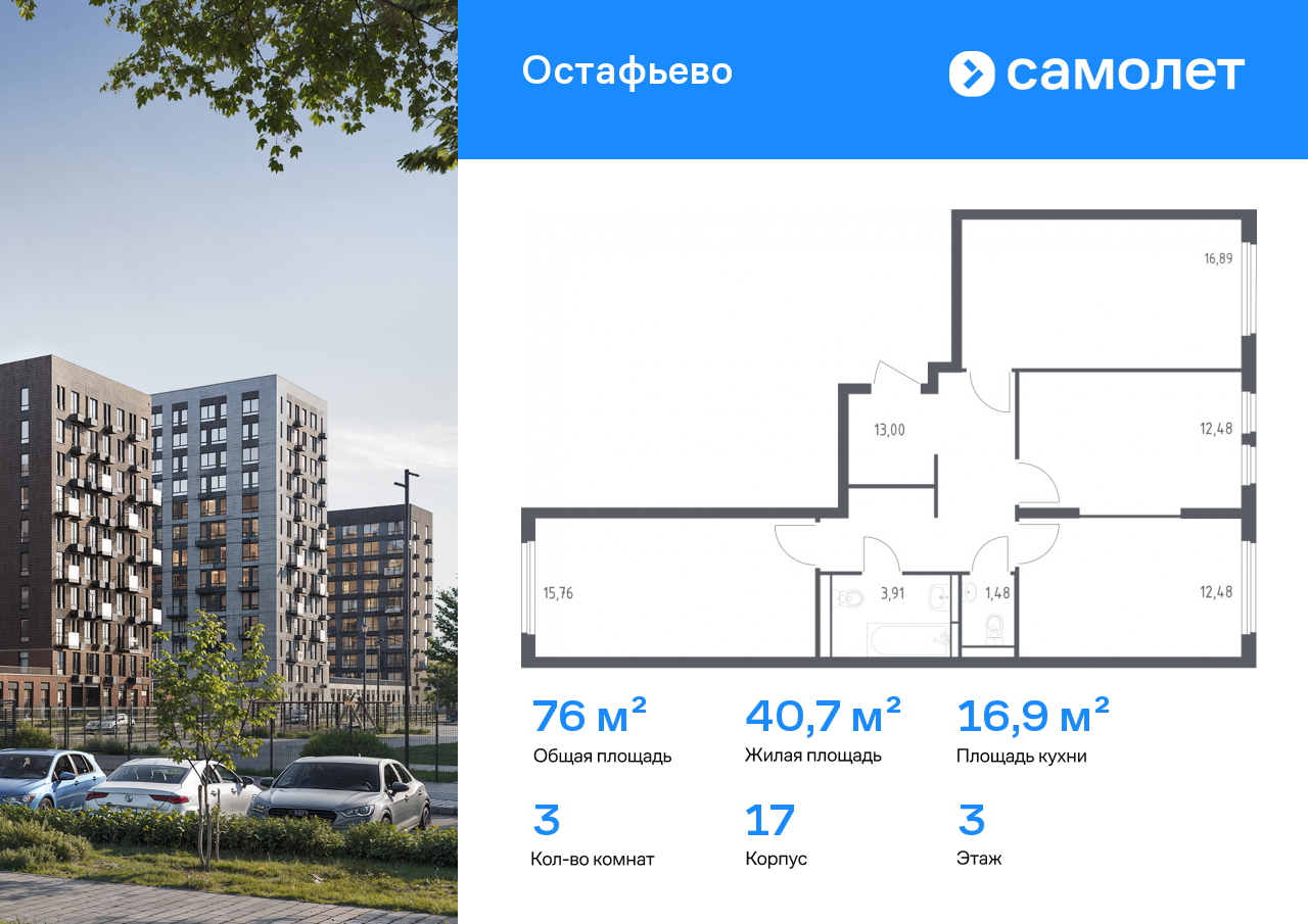 Евро трехкомнатные квартиры в ЖК «Остафьево»
