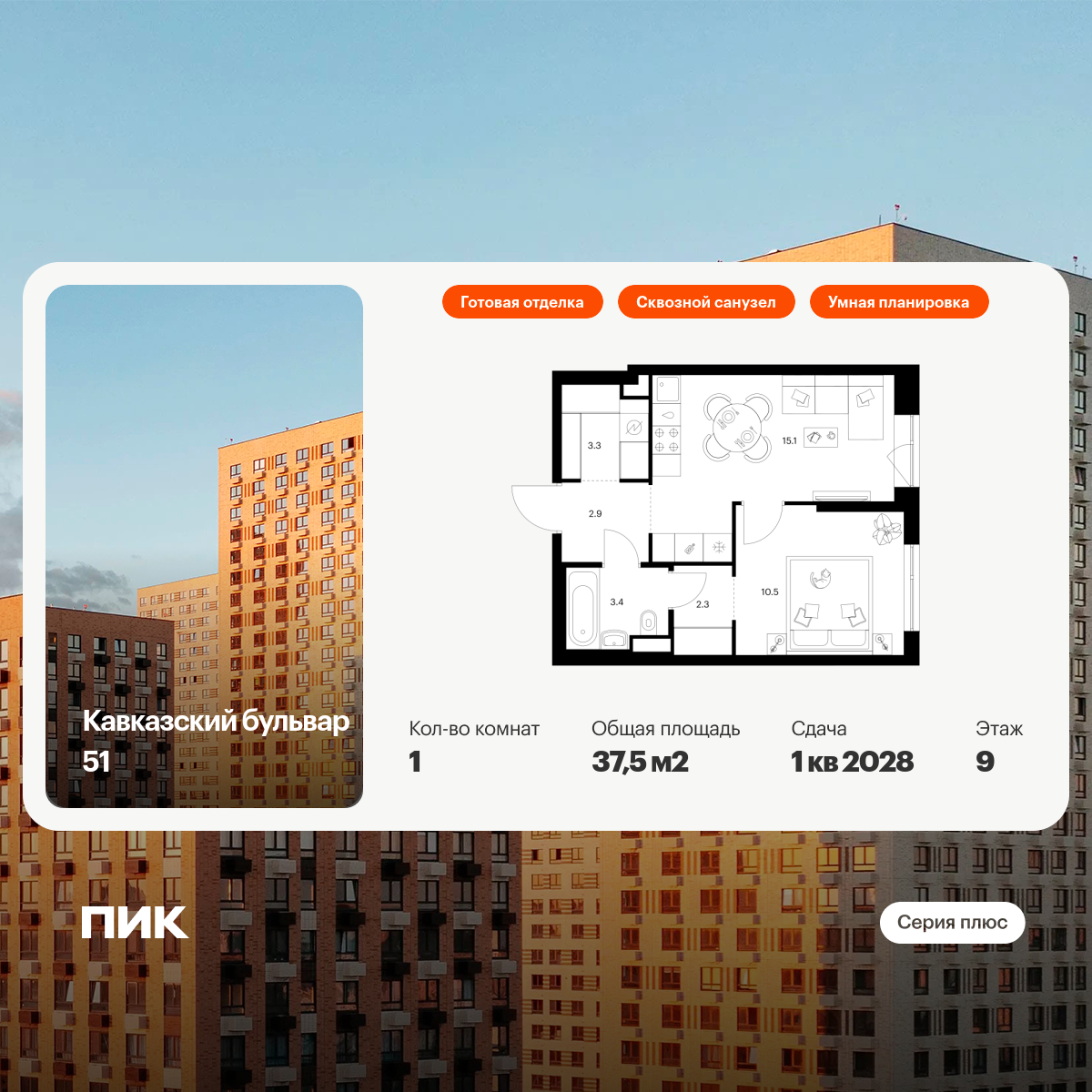 «Кавказский бульвар 51» — современный жилой квартал в районе Царицыно. Проект частично реализован: здесь можно купить квартиру со сдачей в 2025-м или выбрать жильё повышенной комфортности в корпусах «Серии плюс» с продуманной архитектурой.