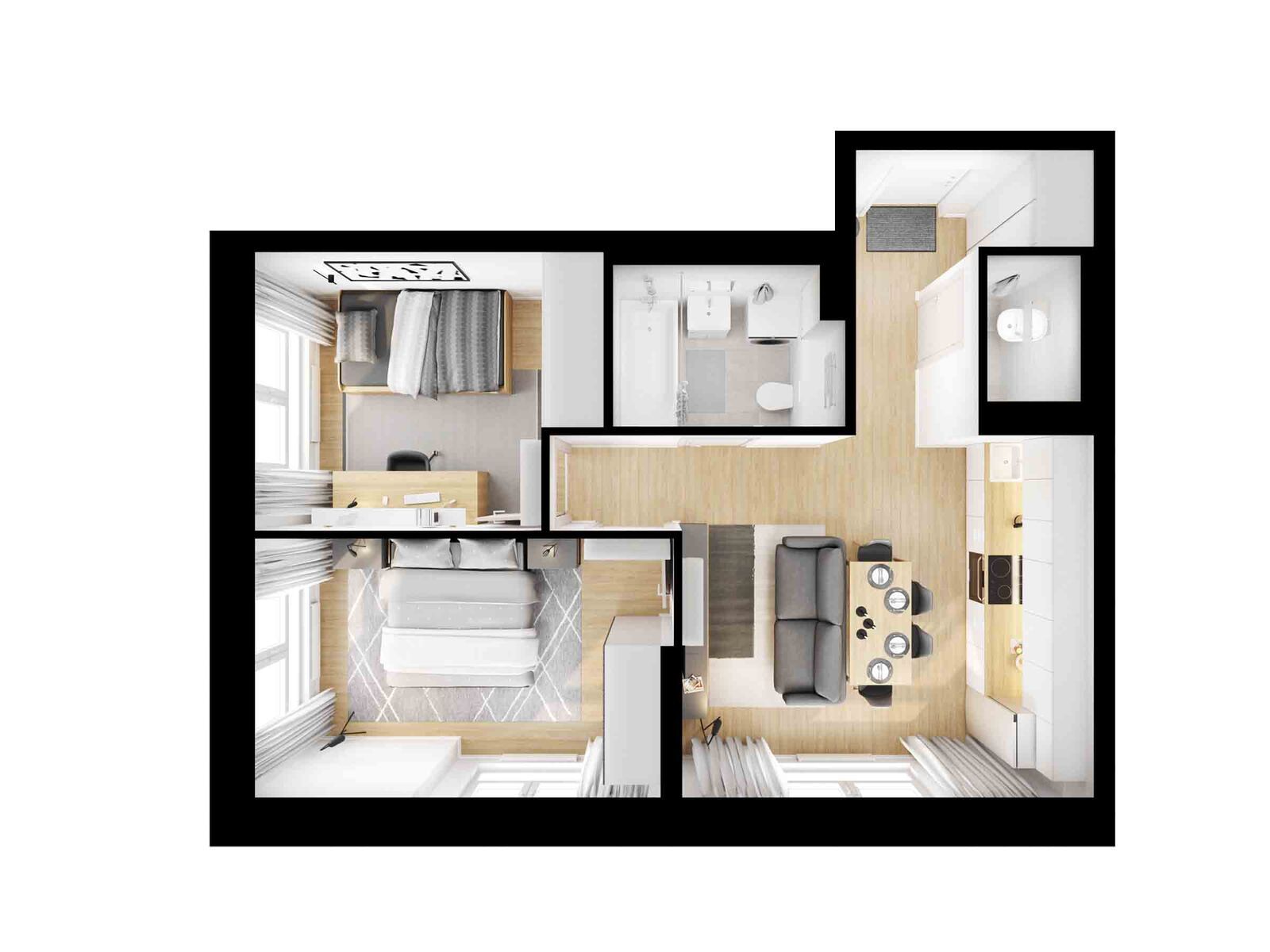В проекте жилые дома высотой от 7 до 32 этажей, детский сад и школа. На первых этажах доступны магазины, кафе, салоны красоты и другие сервисы — чтобы купить кофе и свежий хлеб к завтраку, можно просто спуститься на лифте.