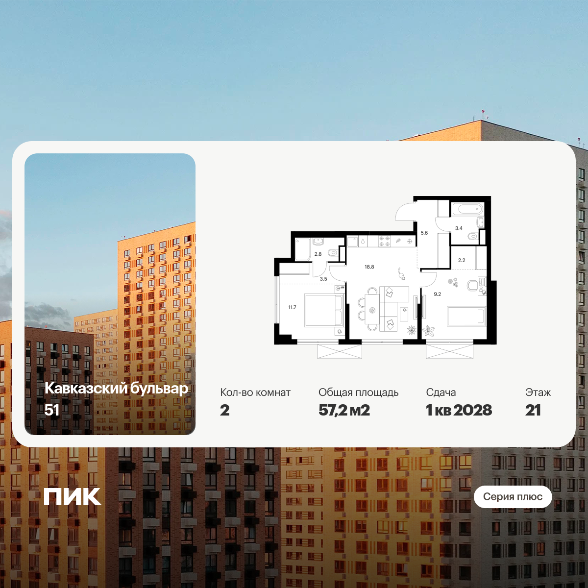 Двухкомнатные квартиры в Кавказский бульвар 51 - страница 2