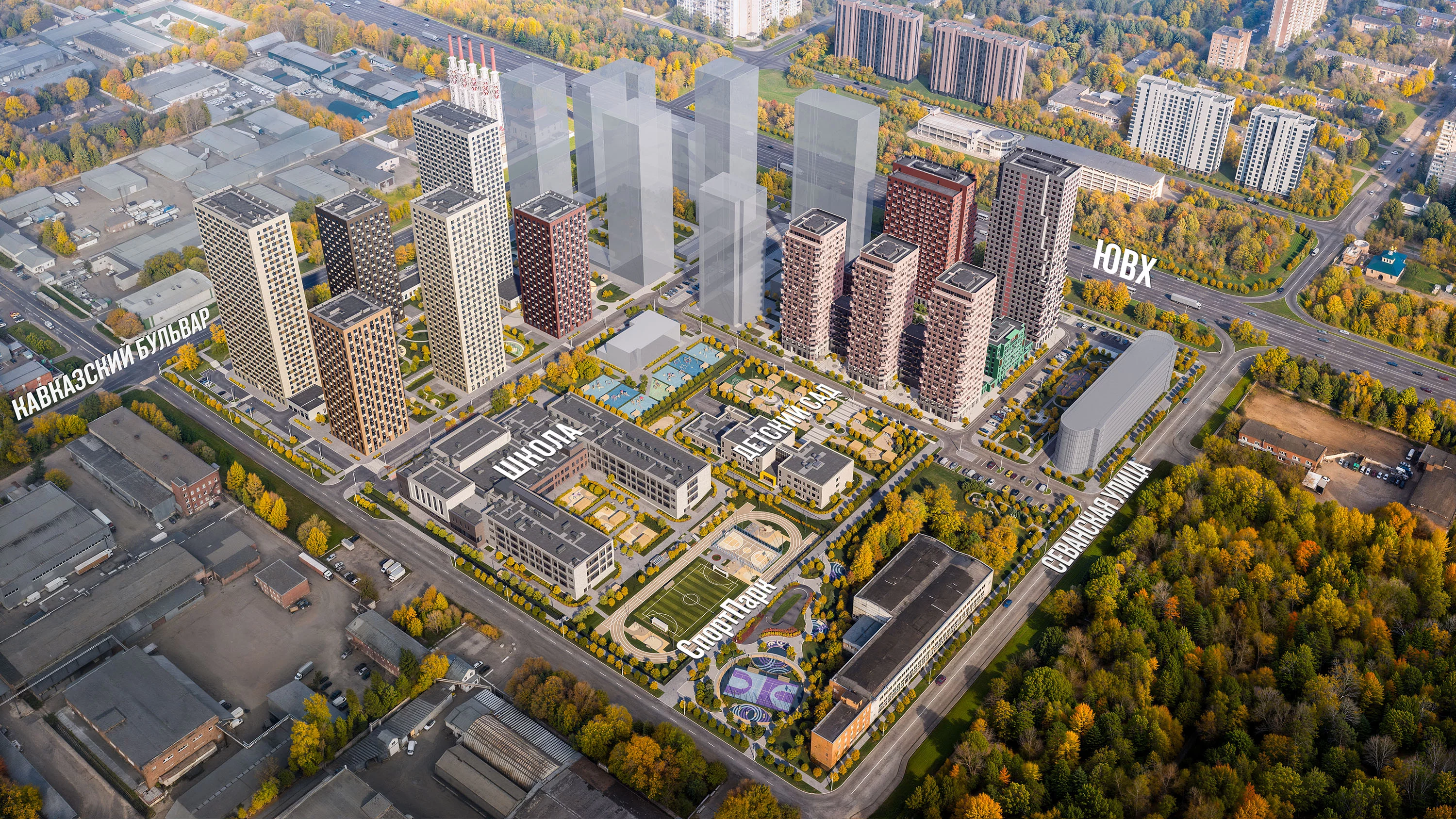 На территории проекта появятся детский сад и школа. На первых этажах откроются магазины, кафе, салоны красоты и другие сервисы. А для владельцев автомобилей предусмотрены многоуровневый и подземные паркинги.