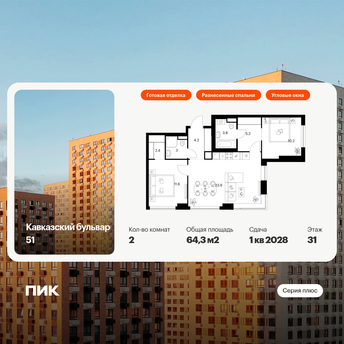 «Кавказский бульвар 51» — современный жилой квартал в районе Царицыно. Проект частично реализован: здесь можно купить квартиру со сдачей в 2025-м или выбрать жильё повышенной комфортности в корпусах «Серии плюс» с продуманной архитектурой.
