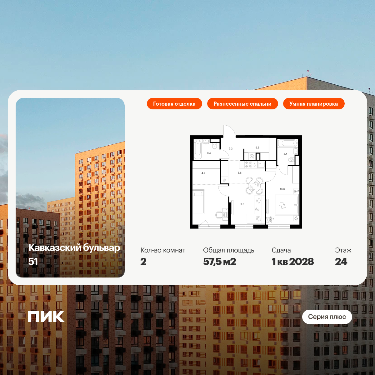 «Кавказский бульвар 51» — современный жилой квартал в районе Царицыно. Проект частично реализован: здесь можно купить квартиру со сдачей в 2025-м или выбрать жильё повышенной комфортности в корпусах «Серии плюс» с продуманной архитектурой.