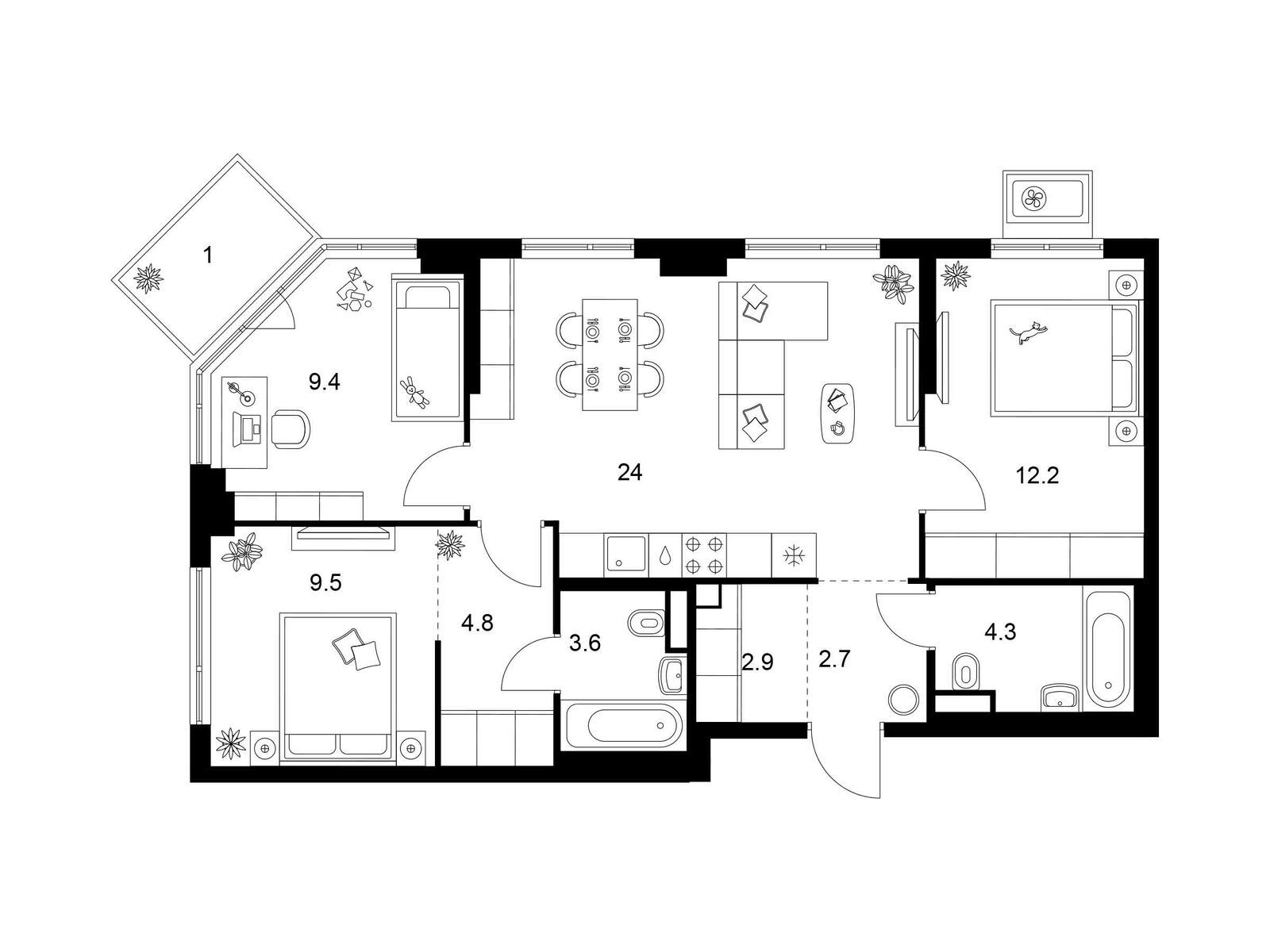 Трехкомнатные квартиры в Кавказский бульвар 51