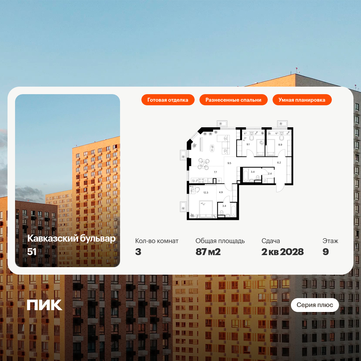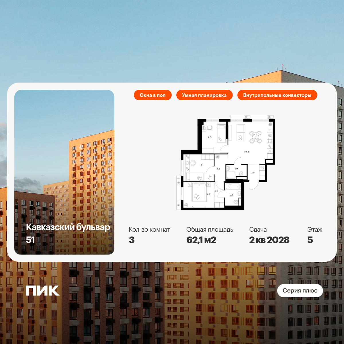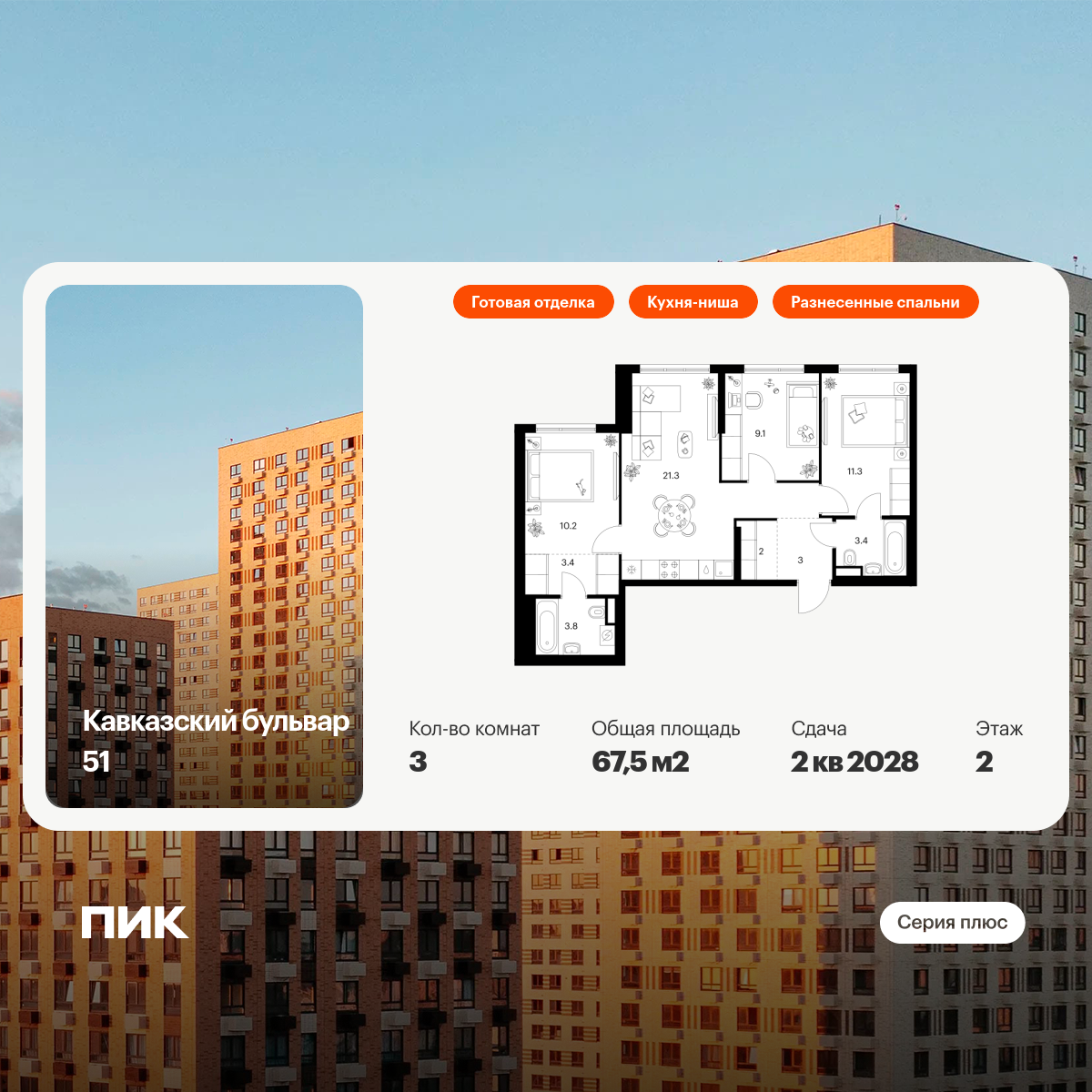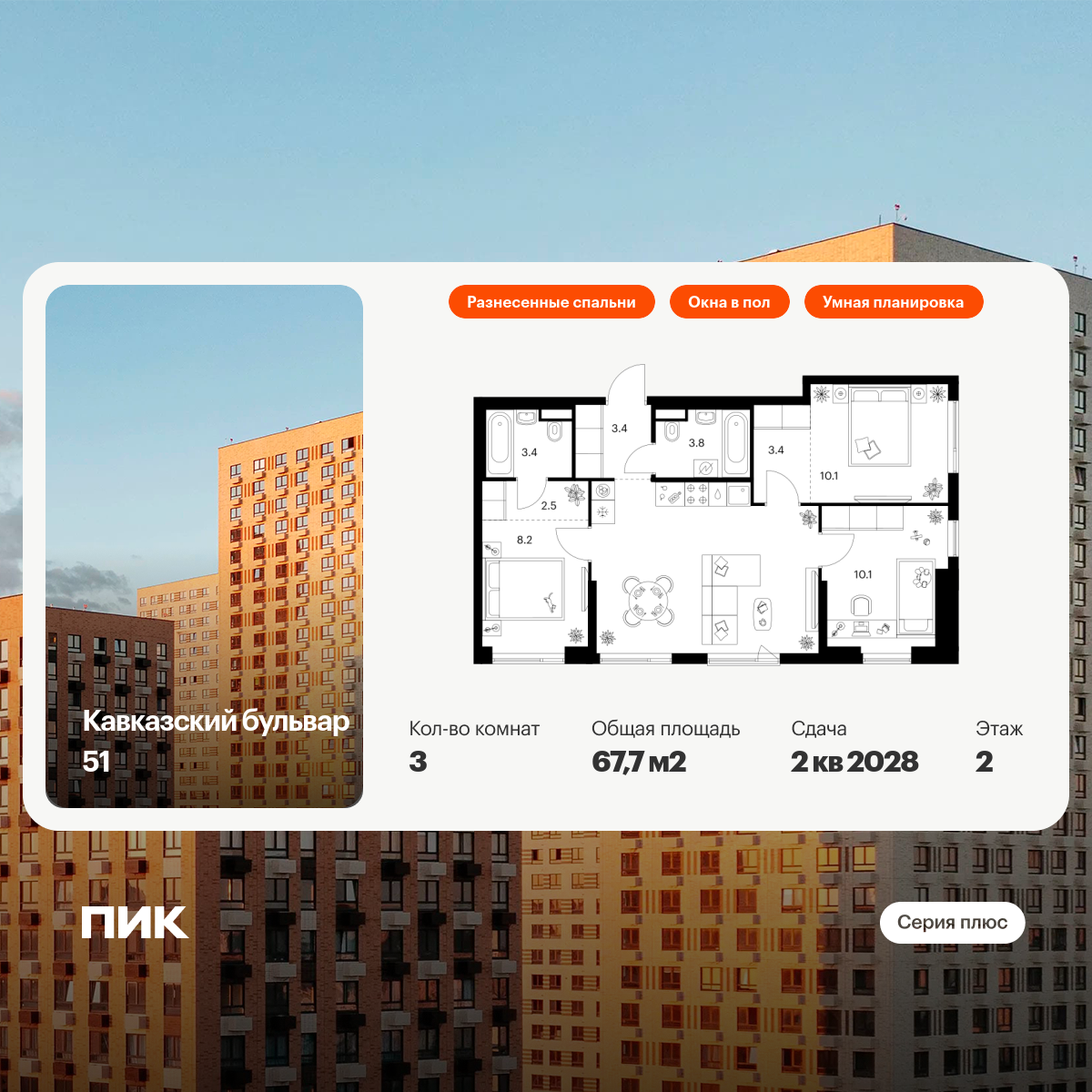 Трехкомнатные квартиры в Кавказский бульвар 51