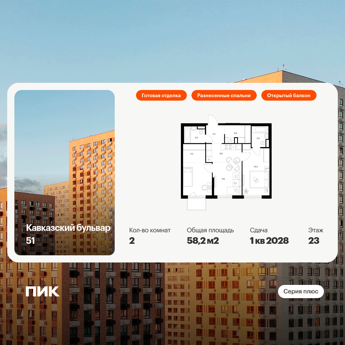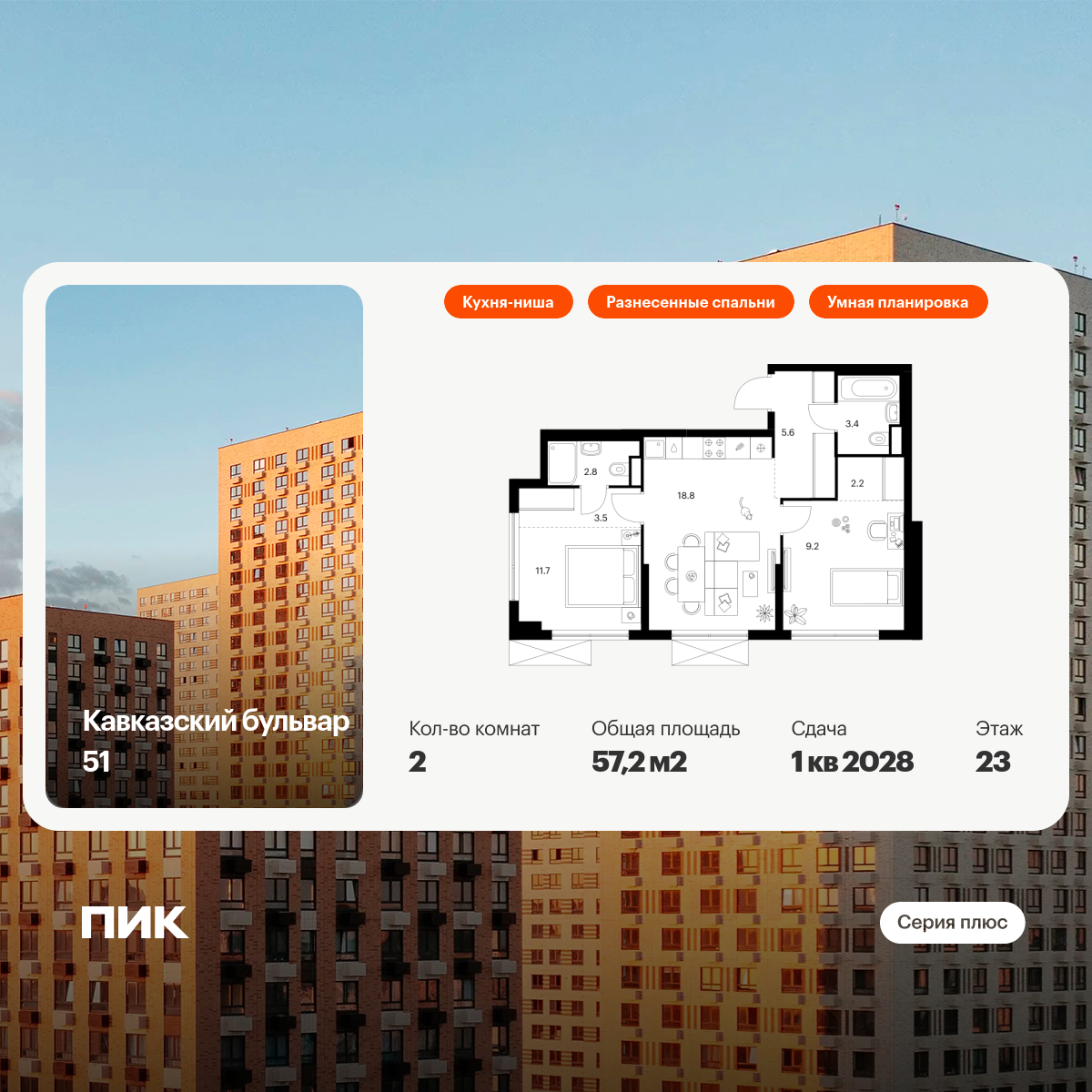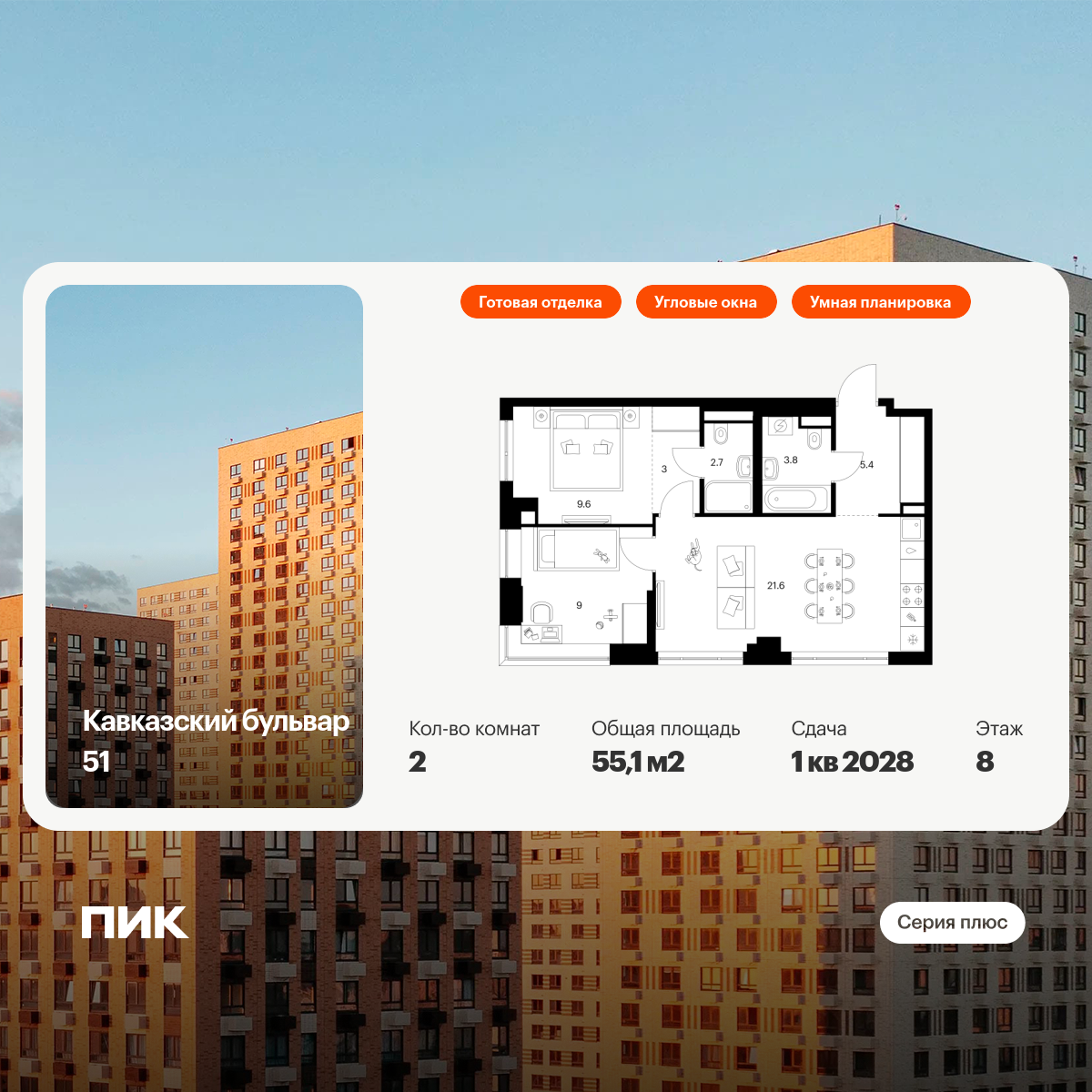 Евро двухкомнатные квартиры в Кавказский бульвар 51