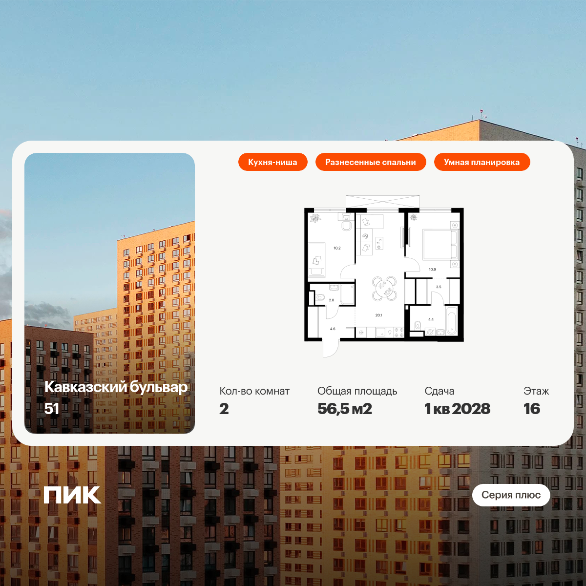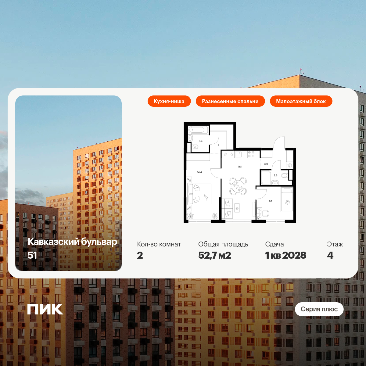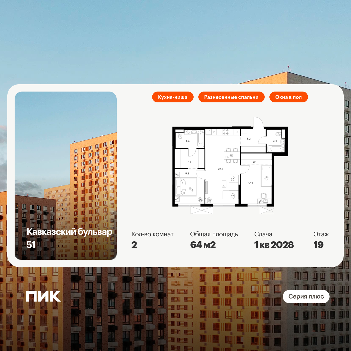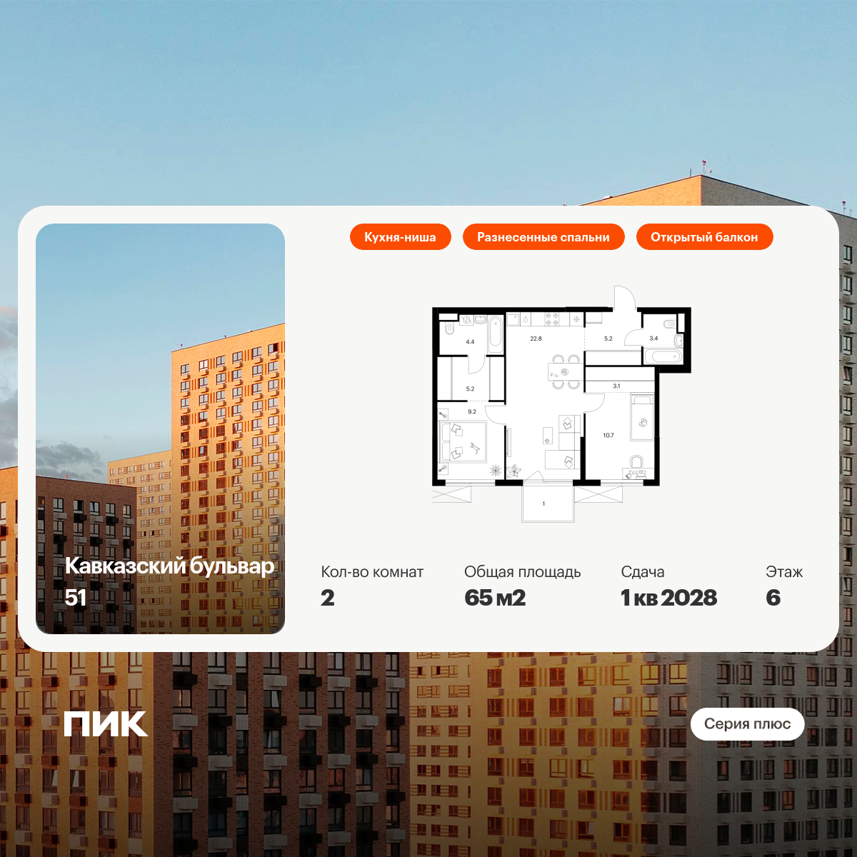 «Кавказский бульвар 51» — современный жилой квартал в районе Царицыно. Проект частично реализован: здесь можно купить квартиру со сдачей в 2025-м или выбрать жильё повышенной комфортности в корпусах «Серии плюс» с продуманной архитектурой.