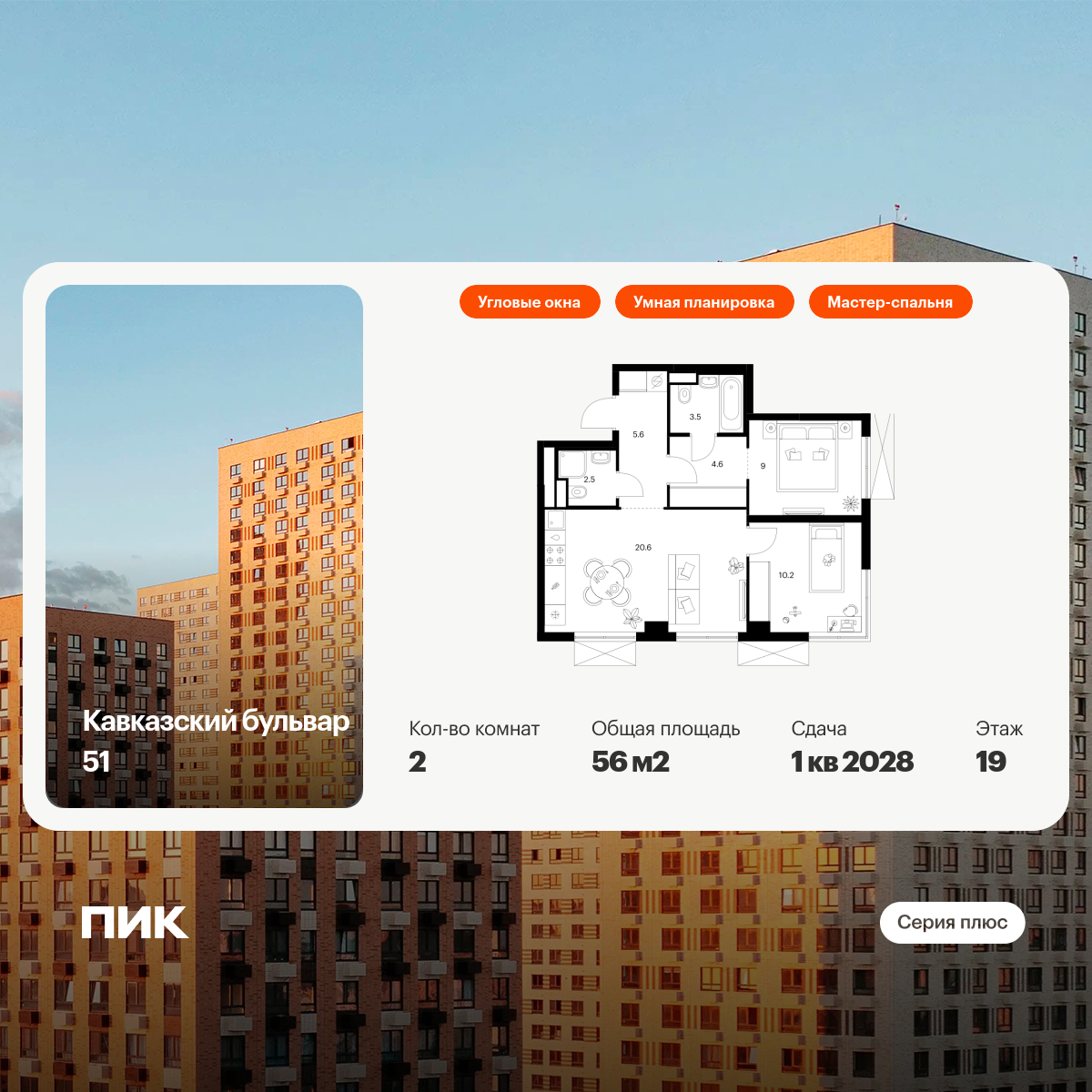 Евро двухкомнатные квартиры в Кавказский бульвар 51