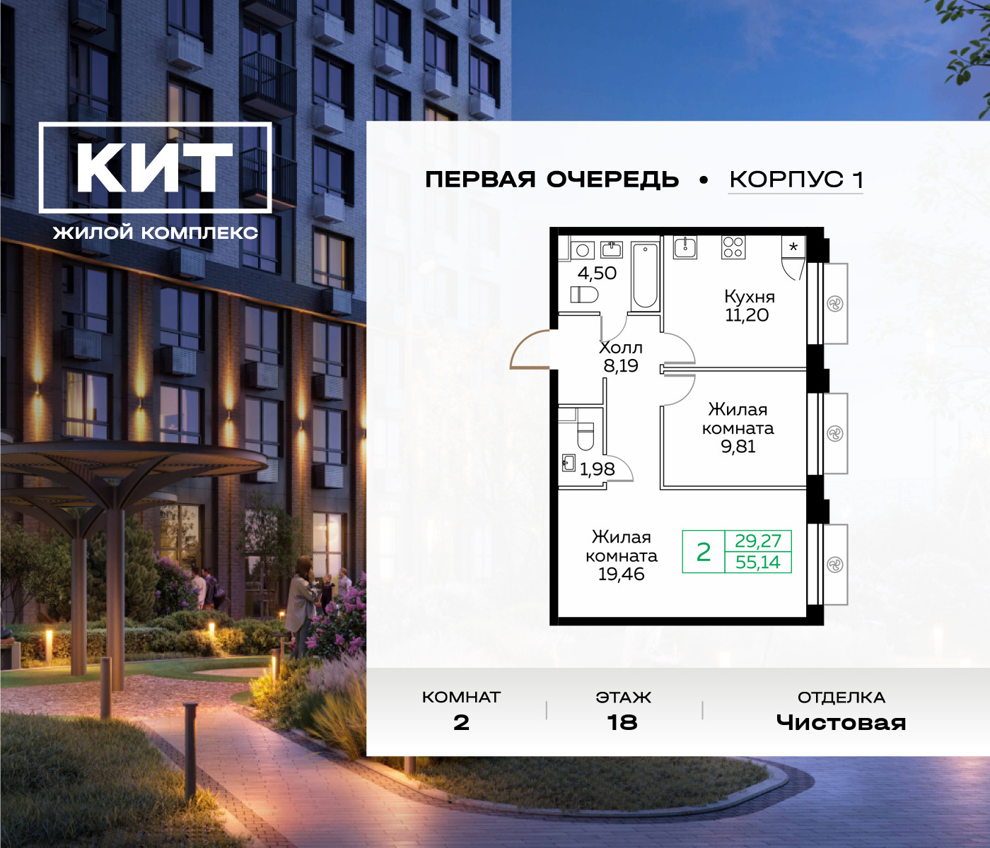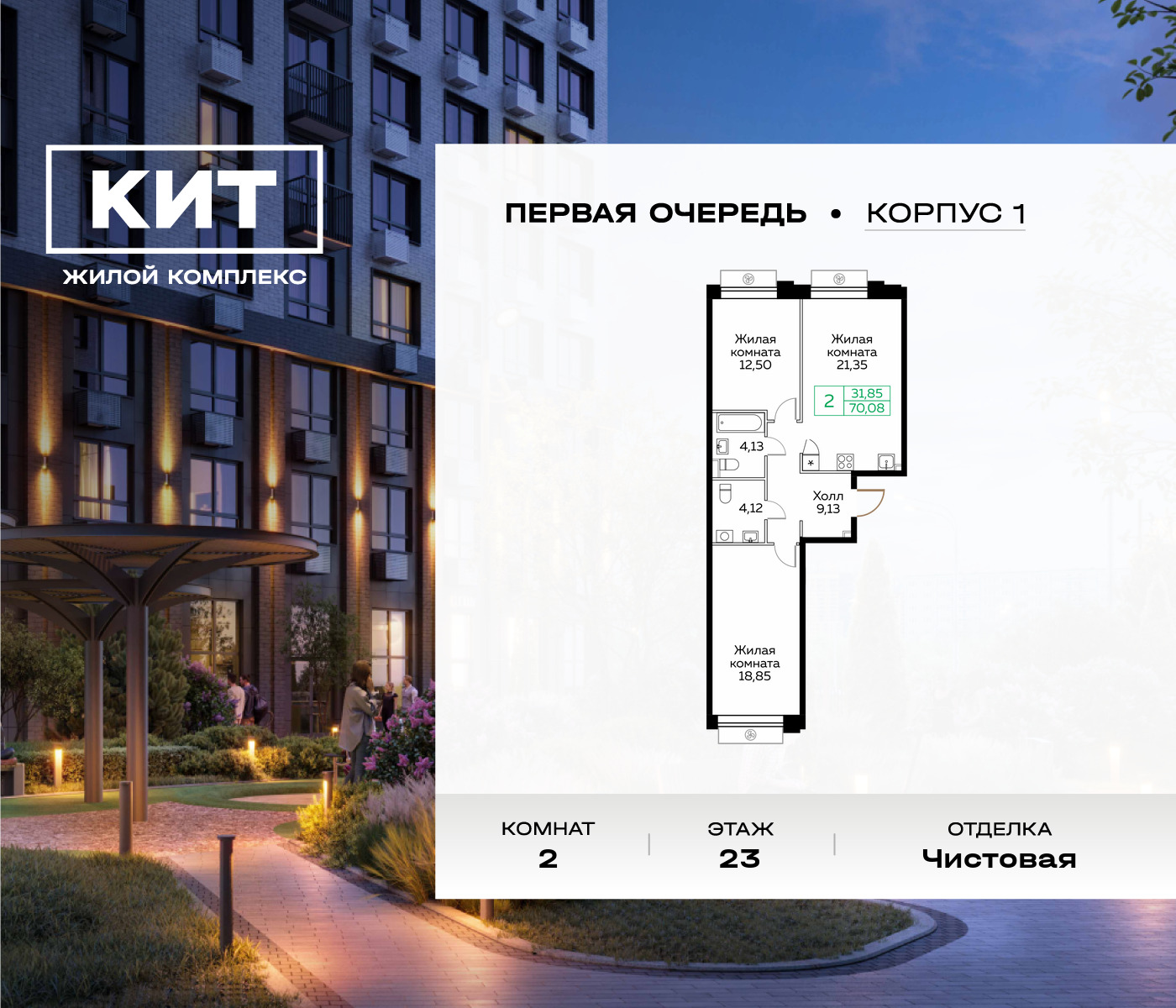 ЖК «КИТ» расположен в городе Мытищи Московской области. Общая площадь жилья составляет 70,9 тысяч кв. м. Застройщиком выступил ООО «СЗ Инвест Груп».
