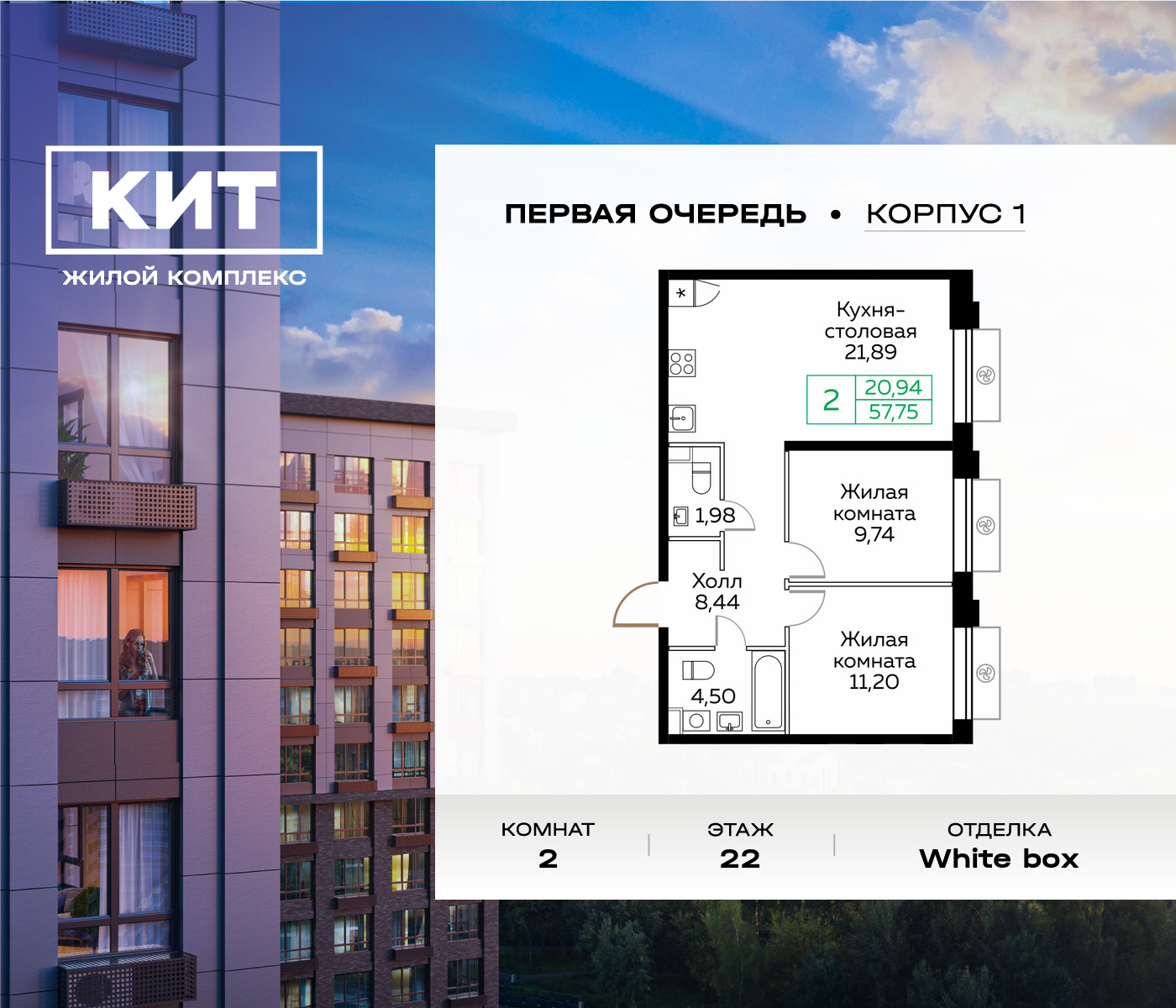 ЖК «КИТ» расположен в городе Мытищи Московской области. Общая площадь жилья составляет 70,9 тысяч кв. м. Застройщиком выступил ООО «СЗ Инвест Груп».