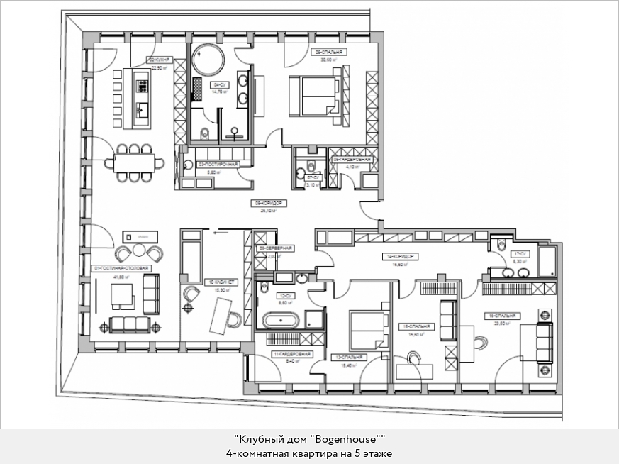 Четырехкомнатные квартиры в Клубный дом на набережной Bogenhouse