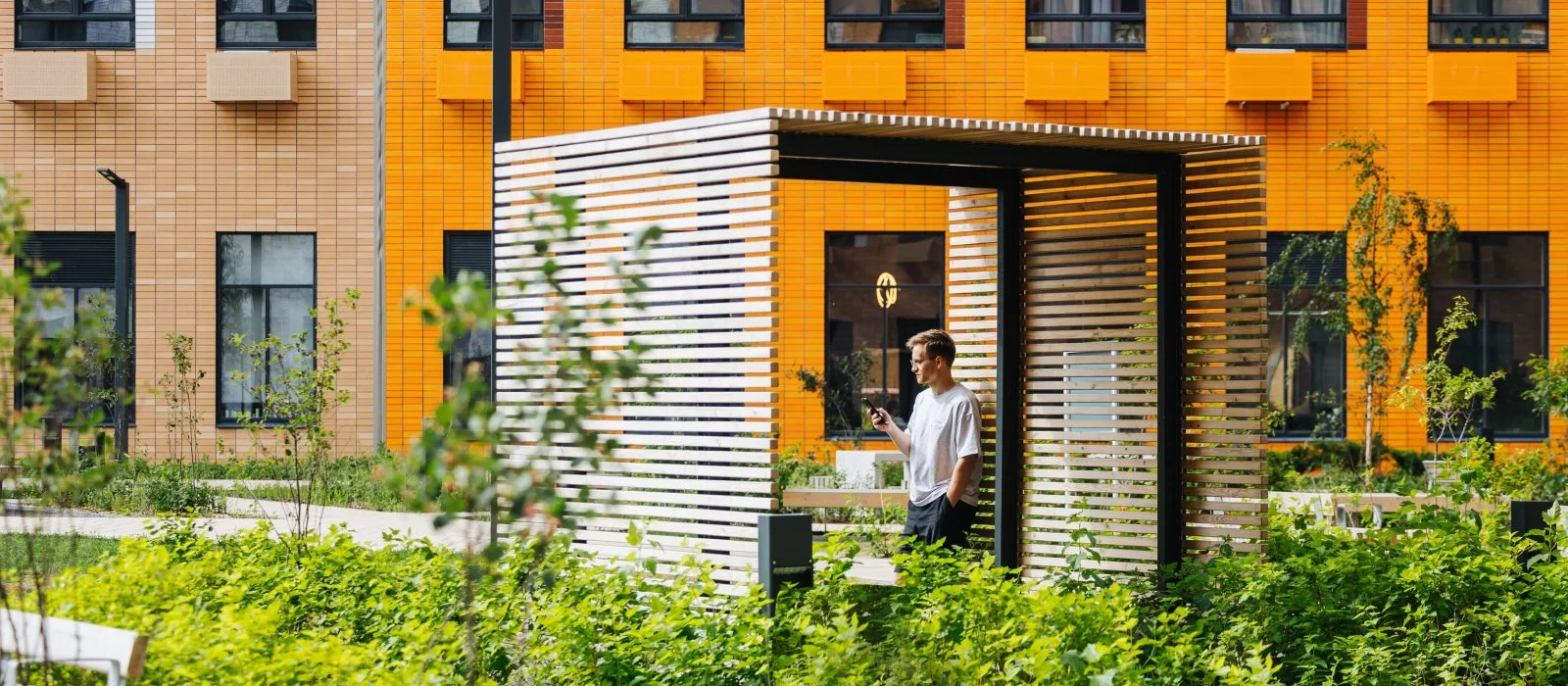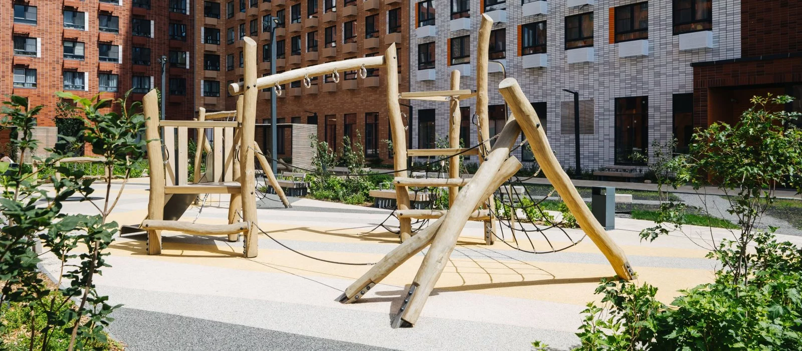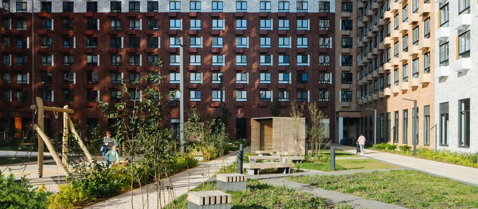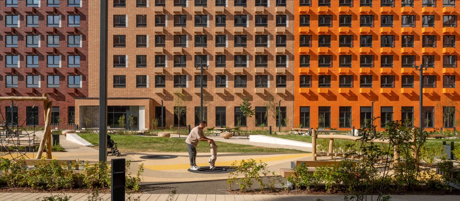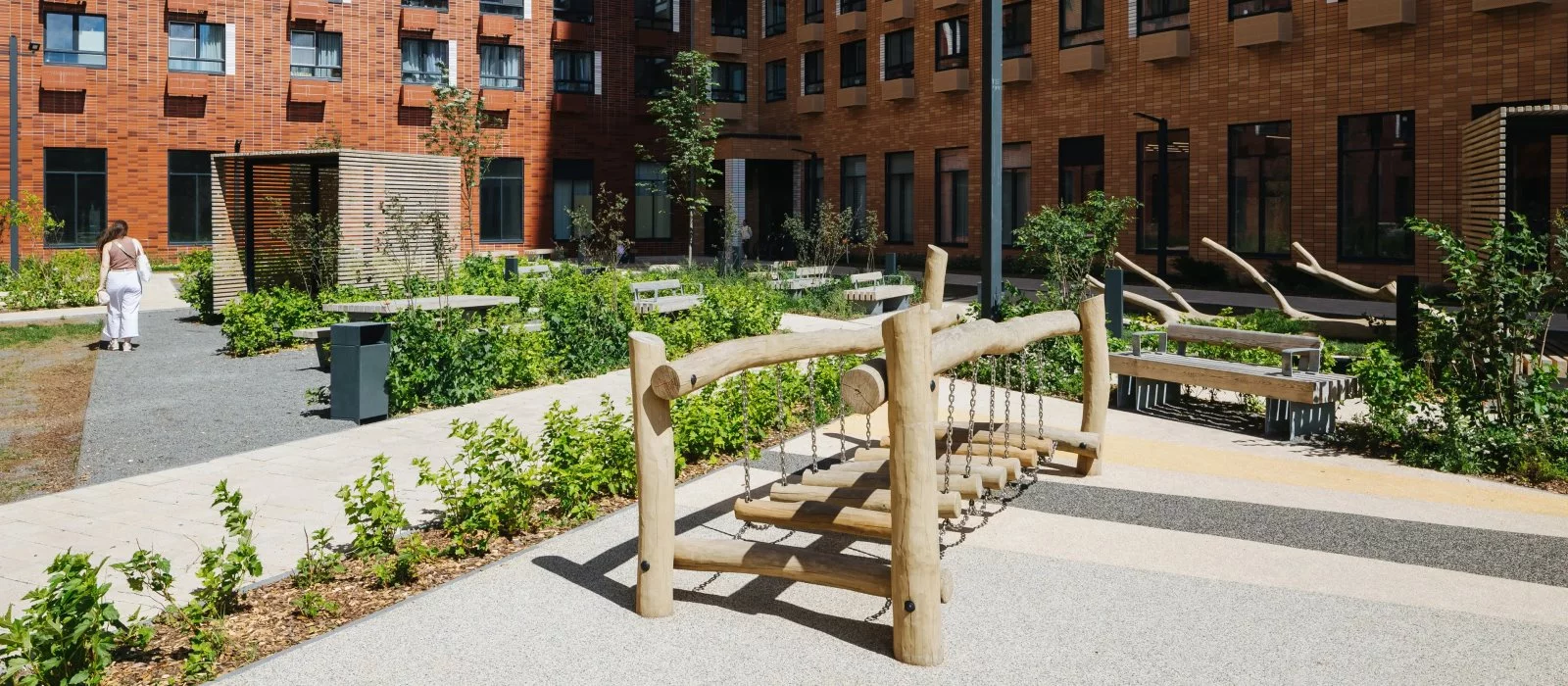 Проект состоит из корпусов с подземными паркингами, школы и детского сада. В зелёных дворах-парках будут места для отдыха, современные детские и спортивные площадки. На первых этажах откроются магазины, кафе и другие сервисы — за кофе и свежим хлебом к завтраку можно будет просто спуститься на лифте.