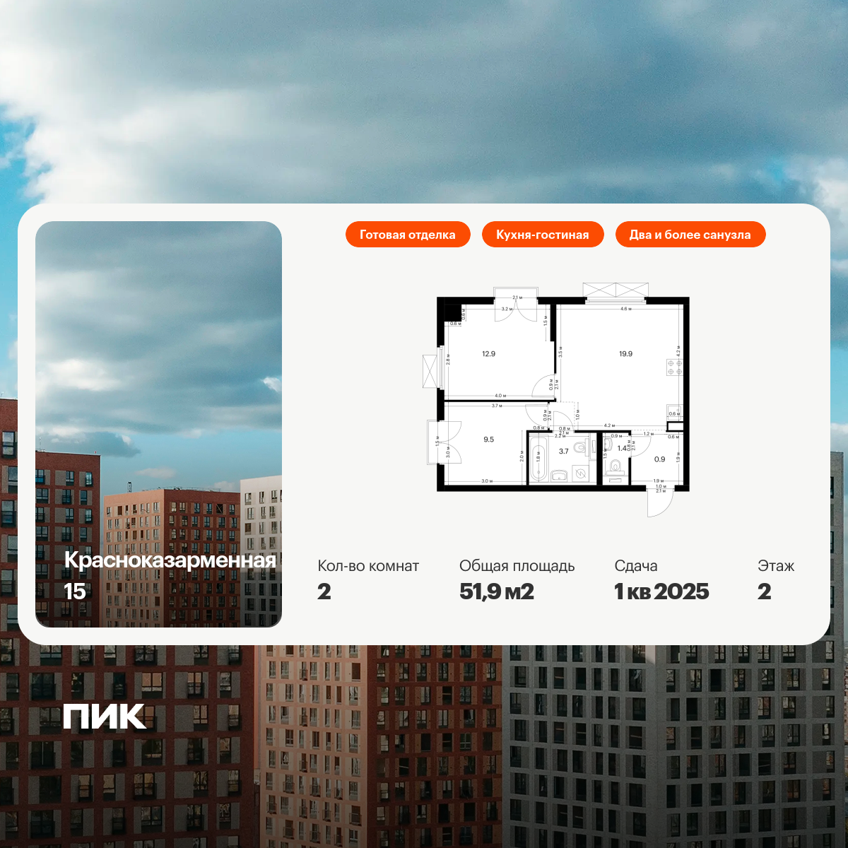 Двухкомнатные квартиры в Красноказарменная 15