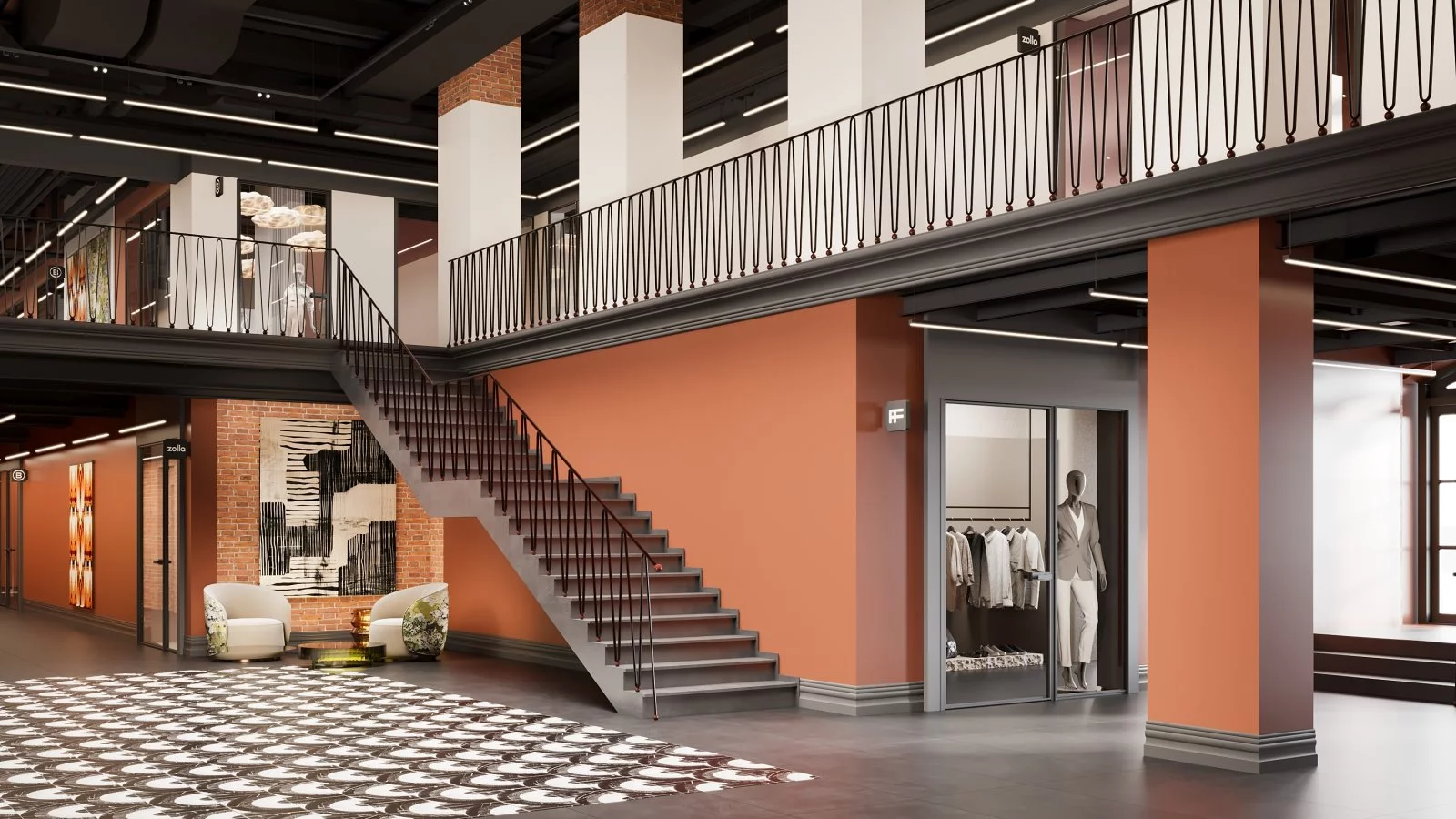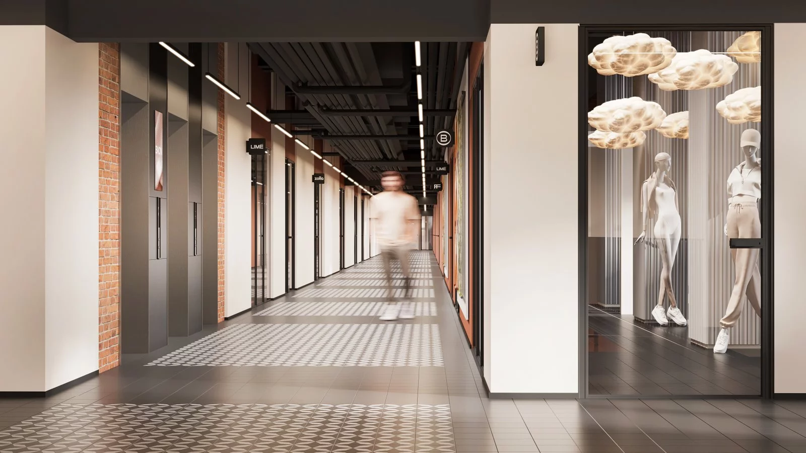 Современный ретейл площадью от 24 кв. м со свободными планировками и потолками высотой от 3,2 до 4 м. У пространств на первом этаже отдельный вход с улицы и места для вывесок на фасаде. Есть лоты с летними террасами, а также с двумя входами — с улицы и из центрального лобби. Предусмотрено двухэтажное помещение под кафе-столовую площадью 320 кв. м с обеденным залом на 120 кв. м и террасой 61,2 кв. м.