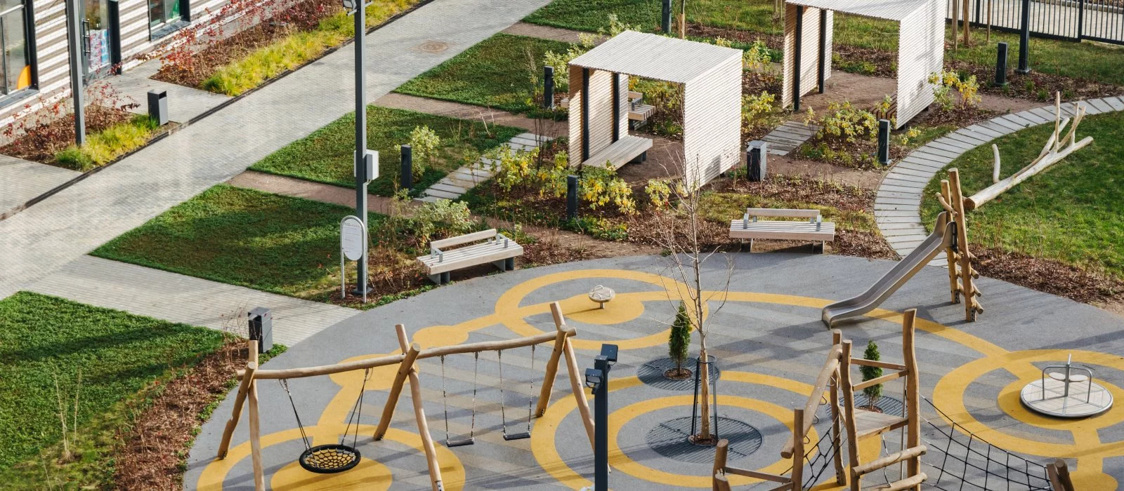 В проекте — жилые дома с уютными дворами, школа, детский сад, подземные и гостевые паркинги. Вокруг — развитый район с детскими садами, школами и поликлиниками. Рядом есть стадион, «МЕГА Белая Дача» и гипермаркет Касторама. Отдохнуть от городской жизни можно в Кузьминском парке и усадьбе «Белая Дача», которые совсем недалеко от «Кузьминского леса».