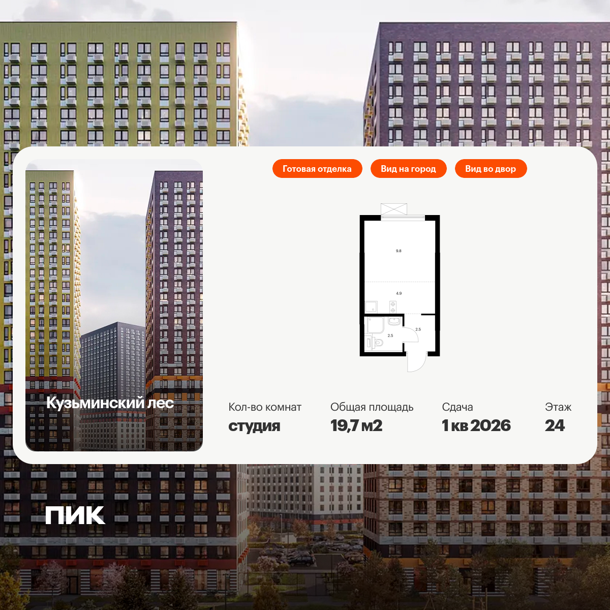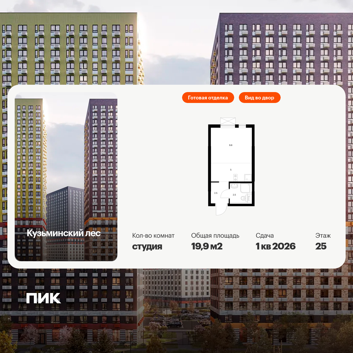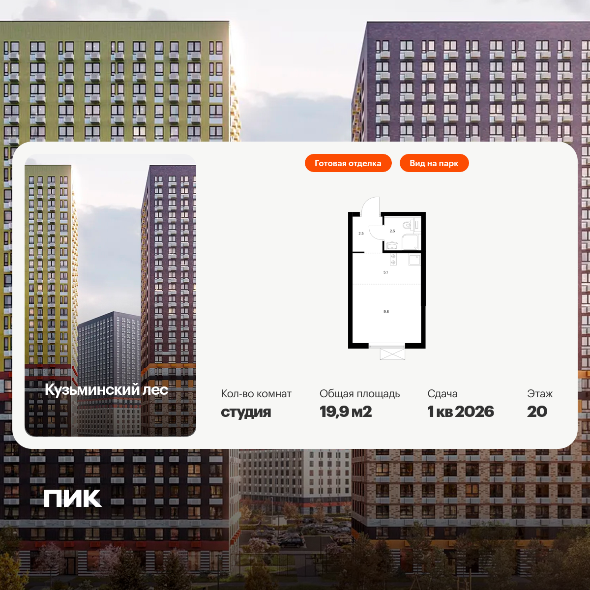 Квартиры-студии в Кузьминский лес